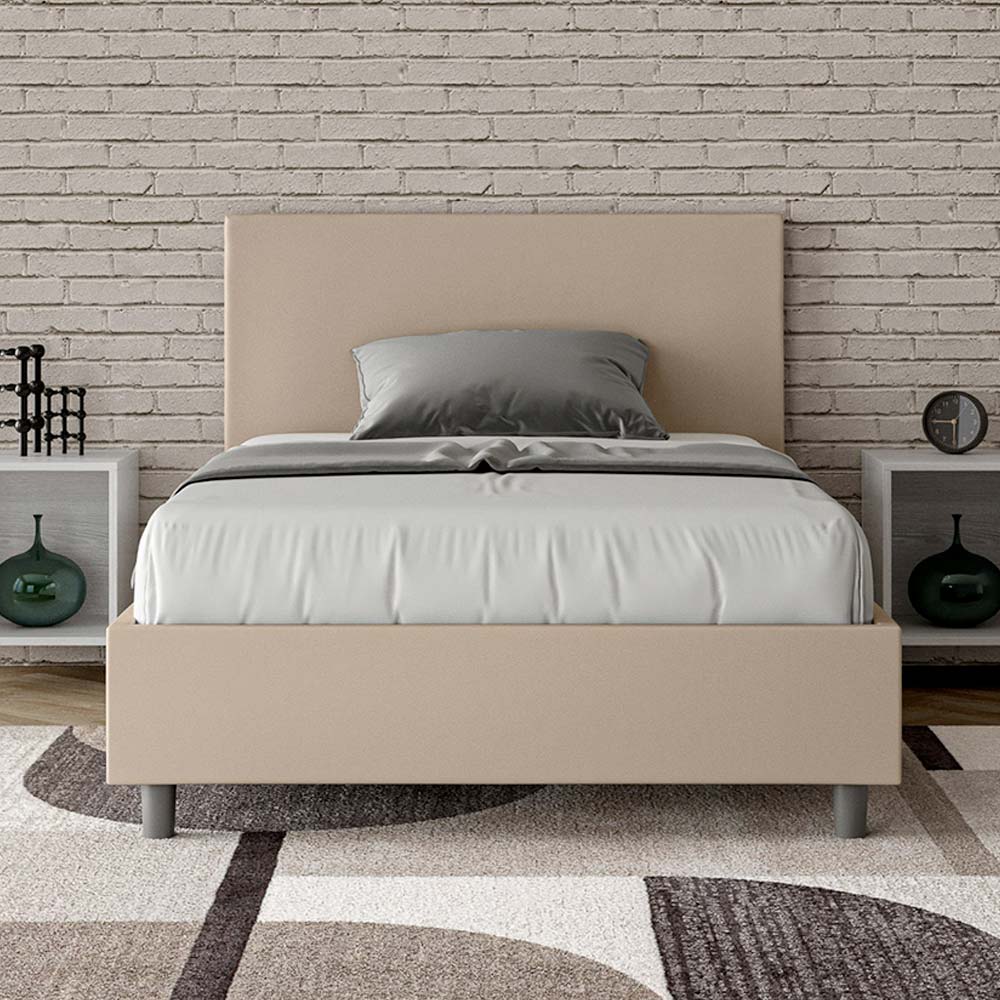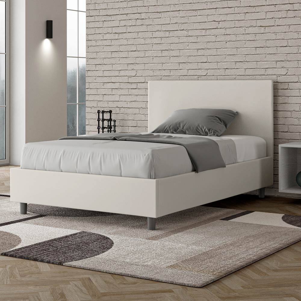 Queensize seng, 120x200 cm, polstret og betrukket med imiteret læder, fremstillet i Italien