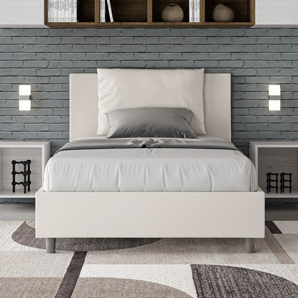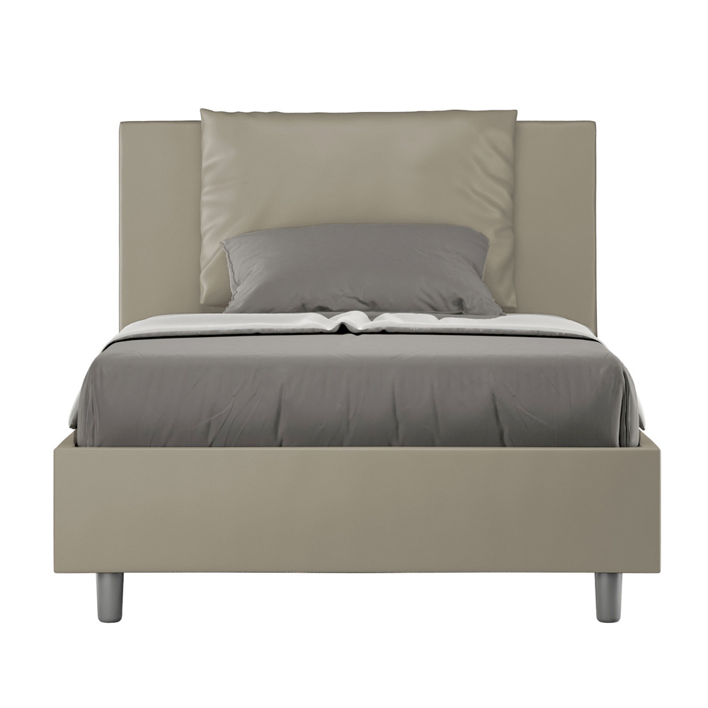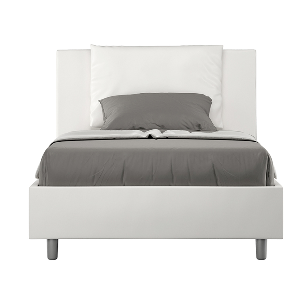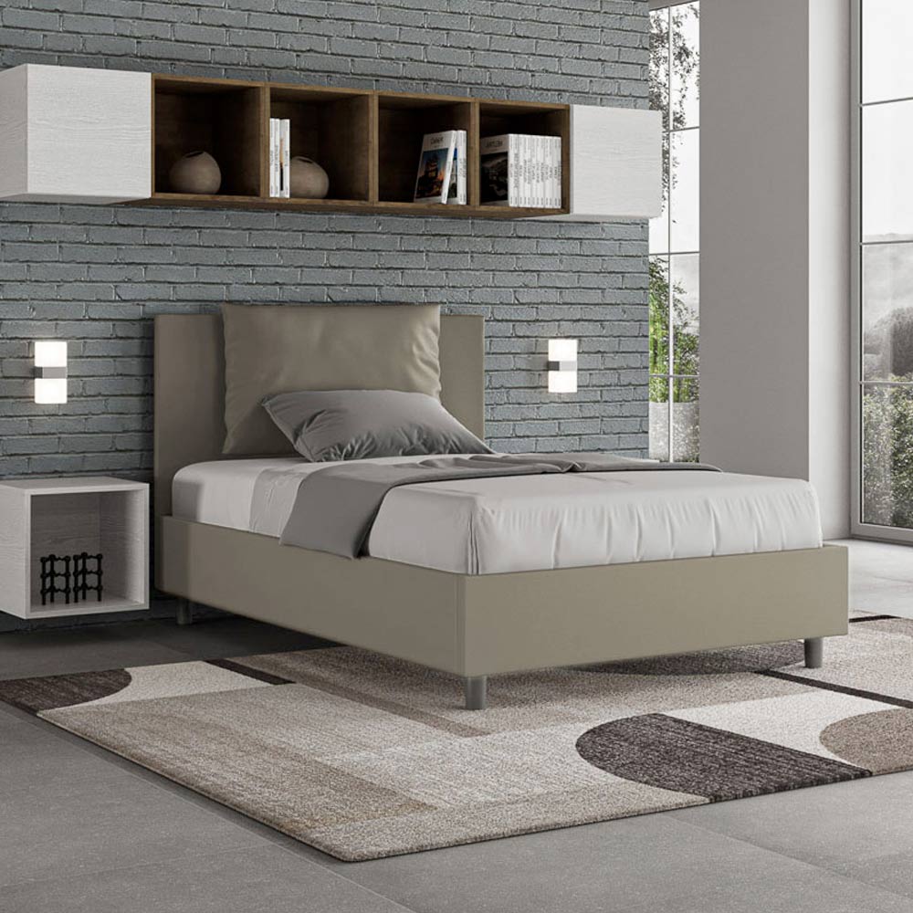 Queensize seng, 120x200 cm, polstret og betrukket med imiteret læder, fremstillet i Italien