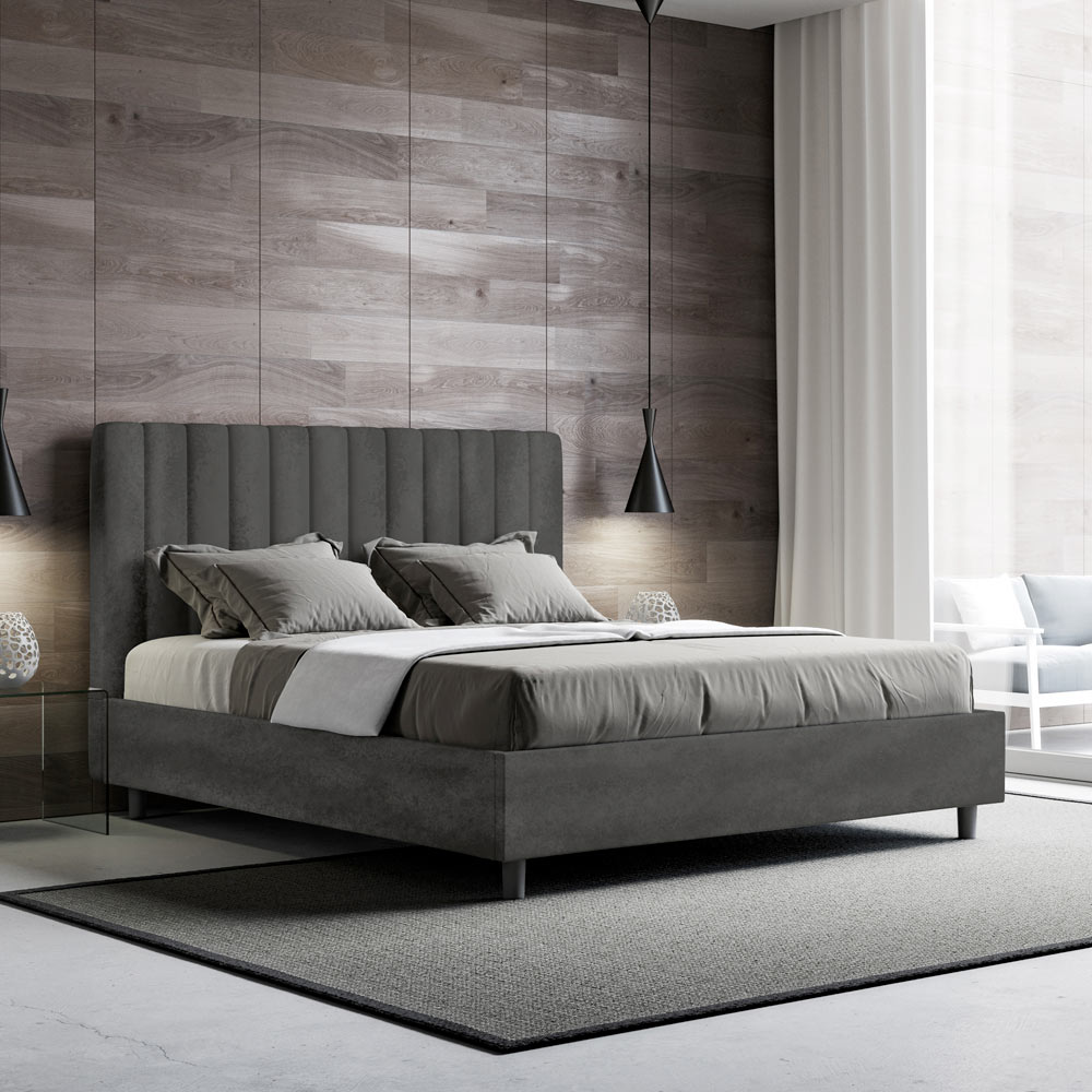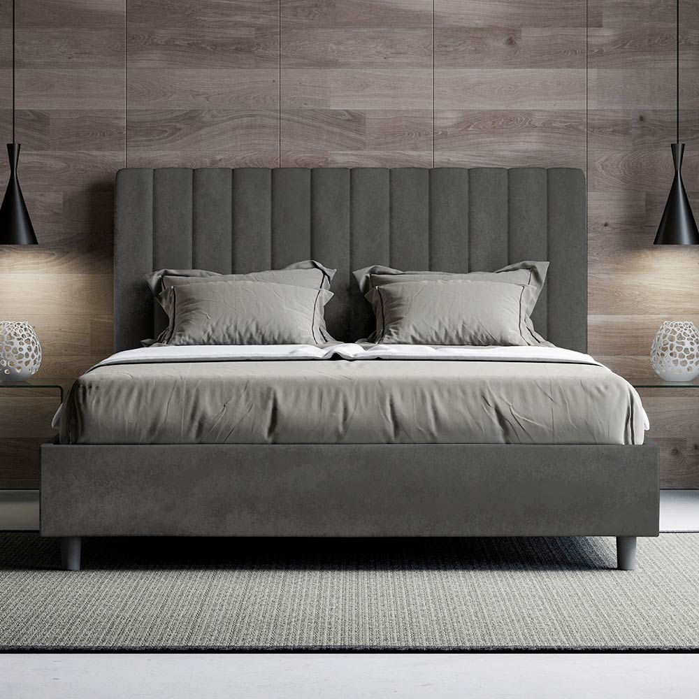 Fransk seng 140x200 cm polstret og betrukket med mikrofiber, fremstillet i Italien