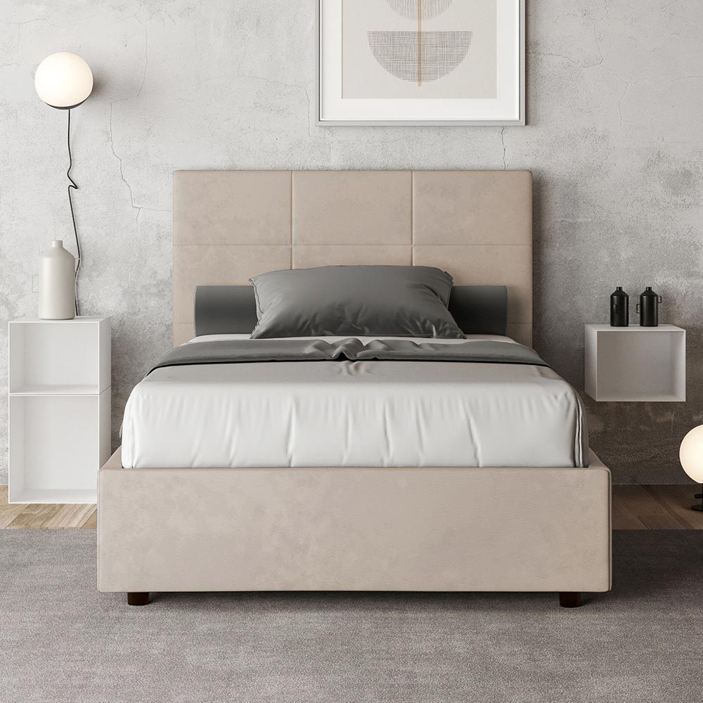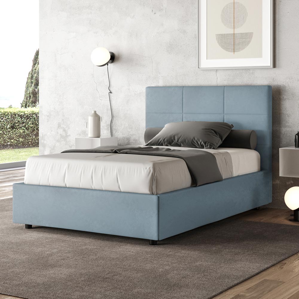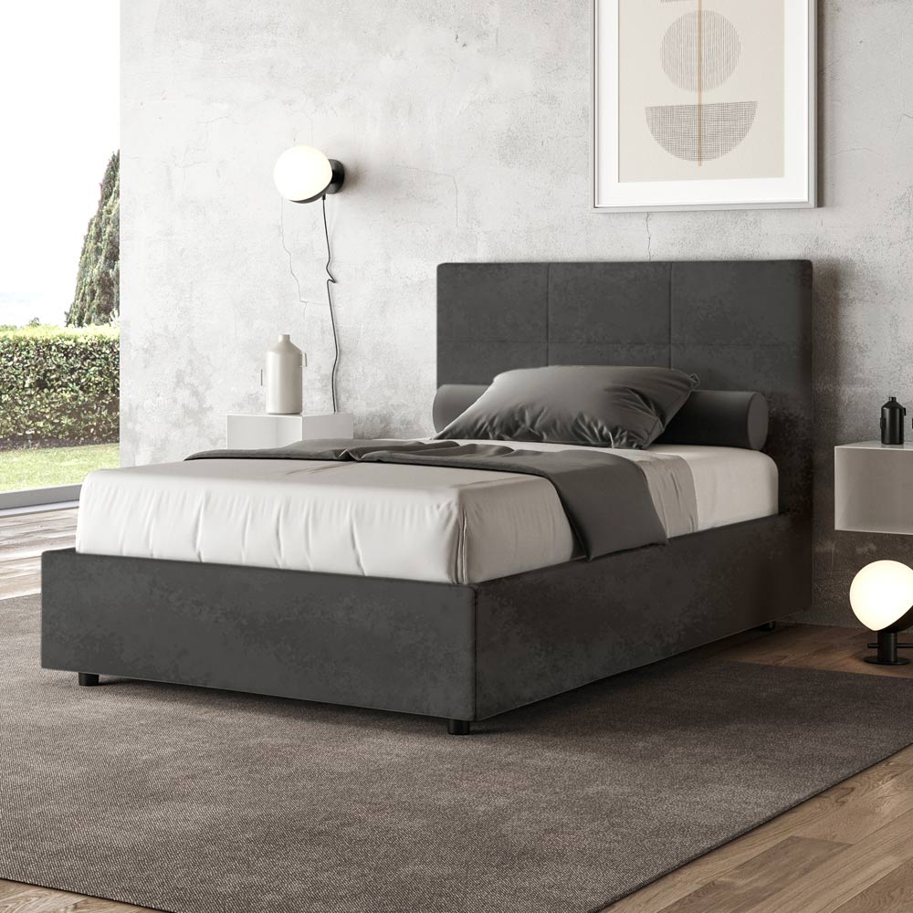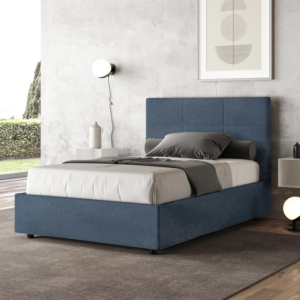 Fransk seng 140x200 cm polstret og betrukket med mikrofiber, fremstillet i Italien