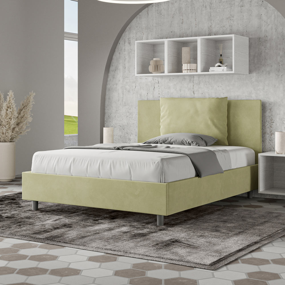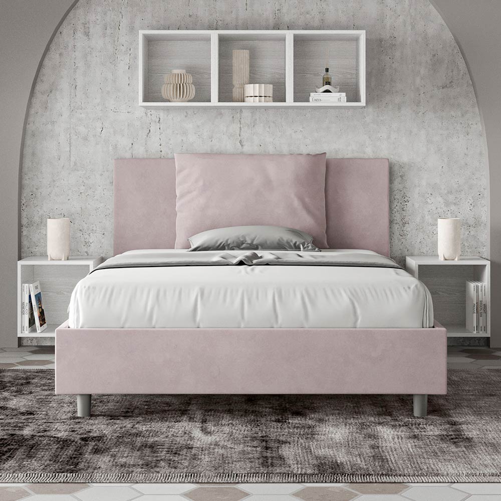 Fransk seng 140x200 cm polstret og betrukket med mikrofiber, fremstillet i Italien