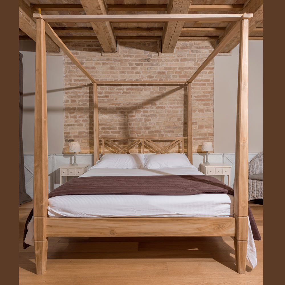 180x200 dobbeltseng med baldakin i massivt teaktræ - Tempera