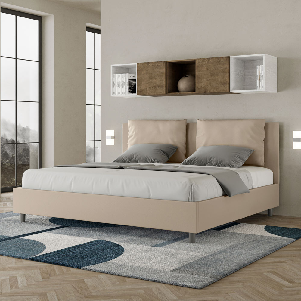 Super king size seng 200x200 cm polstret og betrukket med kunstlæder, fremstillet i Italien