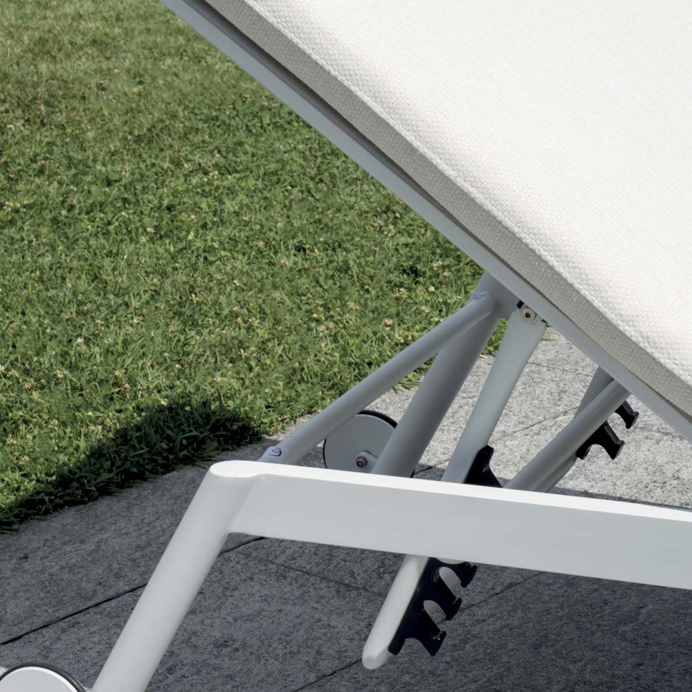 Denne liggestol kombinerer komfort, elegance og praktisk anvendelighed og tilbyder den ideelle løsning til at nyde øjeblikke med ren afslapning udendørs. Den er lavet med en aluminiumsramme og hjul , er let, holdbar og nem at flytte, perfekt til haver, terrasser og poolområder.