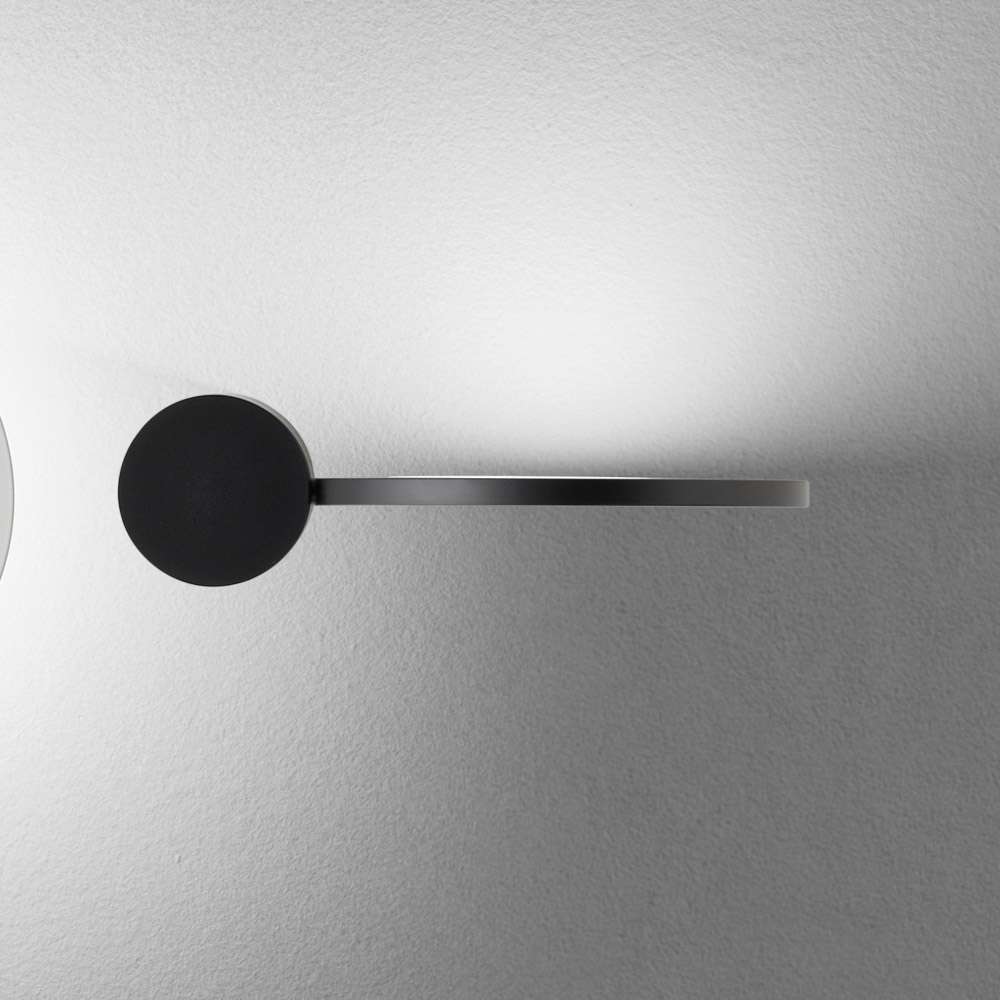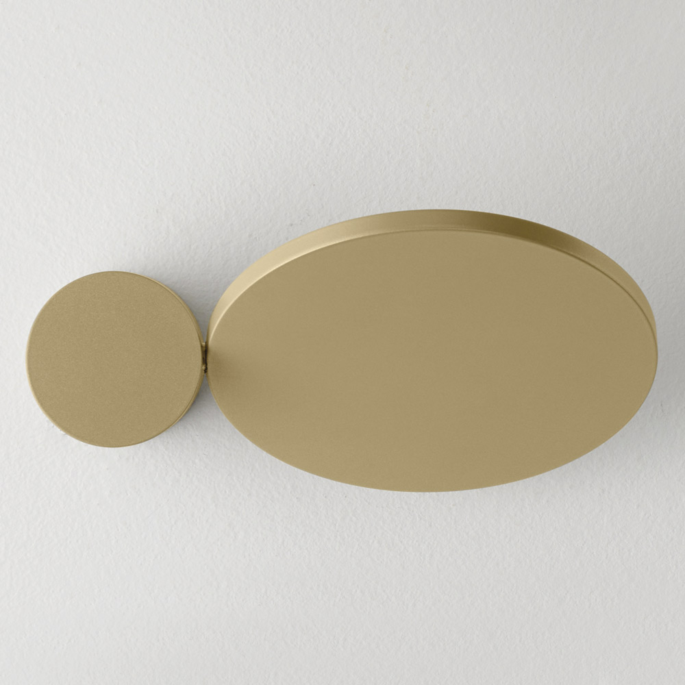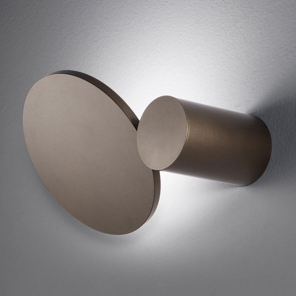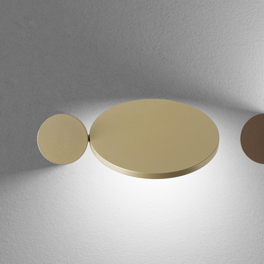 Denne væglampe er et sandt lysende kunstværk , der blander grafisk design og dekorativ funktion i én gestus. Den er sammensat af essentielle geometriske former og leger med overlappende skiver og ovaler , der, når de tændes, skaber en blød og dramatisk lyseffekt på væggen.