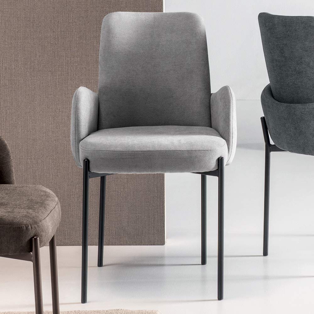 Den tynde, men robuste , malede metalramme omslutter sædet som et værdifuldt element i strukturen, hvilket fremhæver dets profil og giver det overordnede design en visuel lethed. Fås i forskellige finish og farver, så den nemt kan tilpasses forskellige møbelstile.