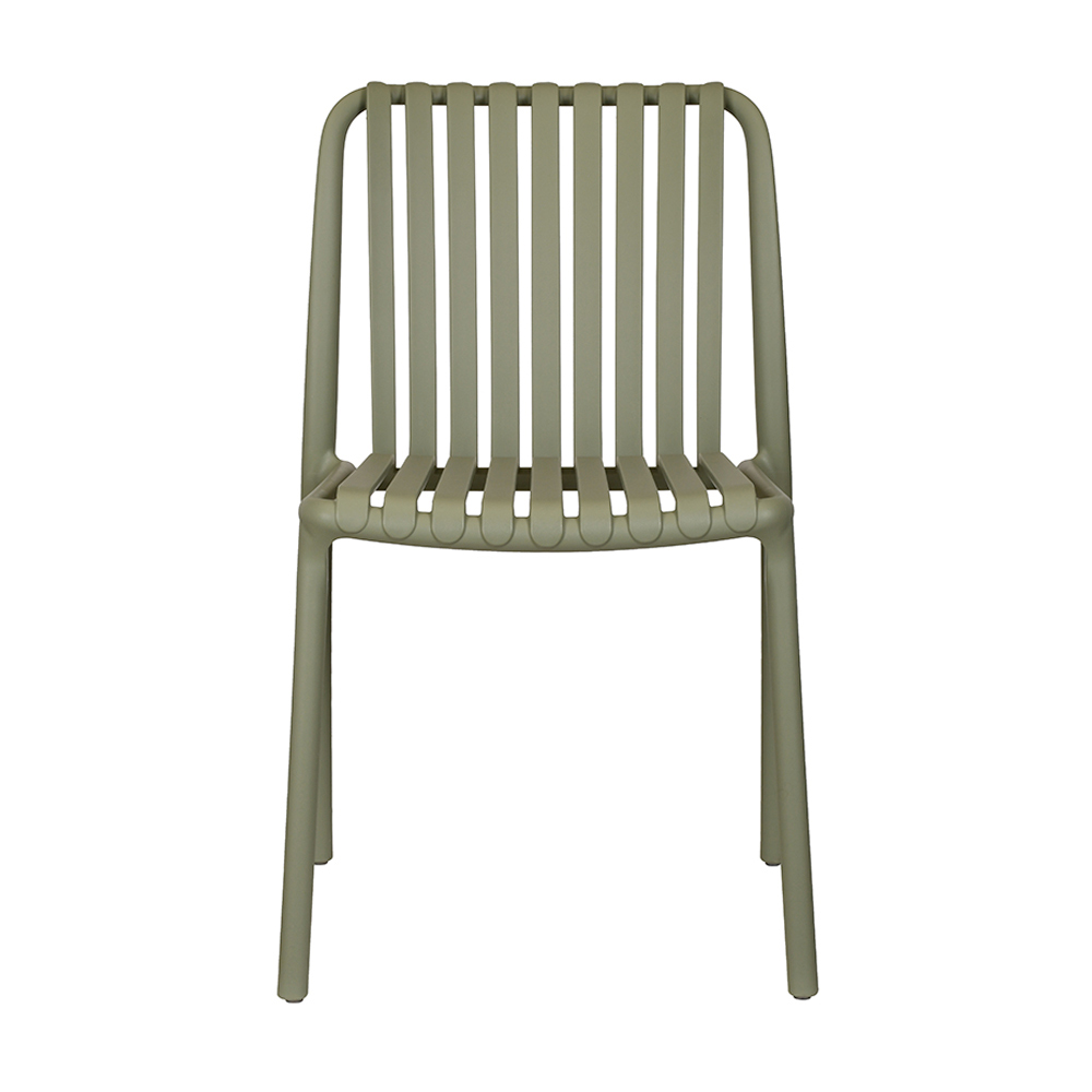 Materialet er UV-bestandigt , hvilket sikrer levende farver og uændrede overflader, selv efter længere tids soleksponering. Med et moderne, lineært design tilpasser denne stol sig nemt til en række forskellige miljøer – fra haver til terrasser til mindre rum som bistroer og hoteller.