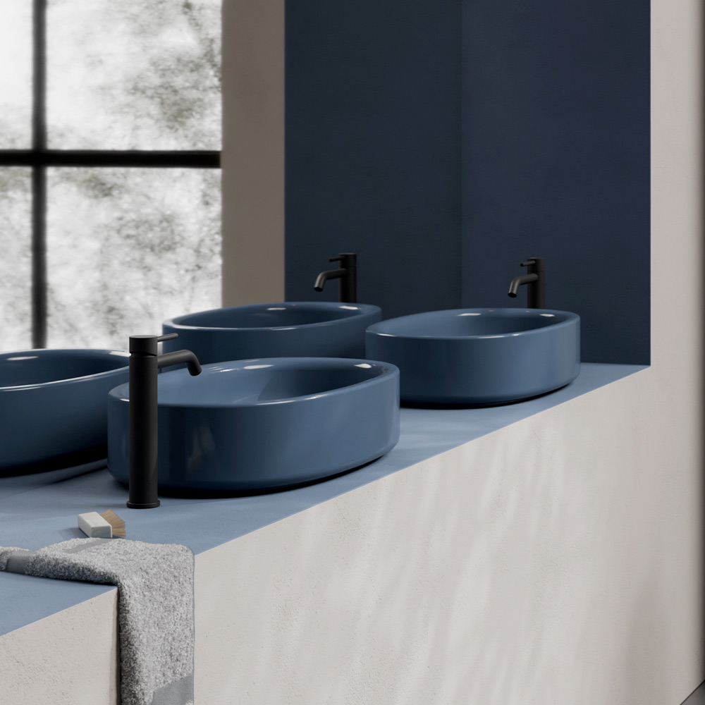Dens let tykke kant giver den soliditet og tilstedeværelse, mens den glatte overflade fremhæver dens lysstyrke og gør den til et sandt fokuspunkt i badeværelsesindretningen.