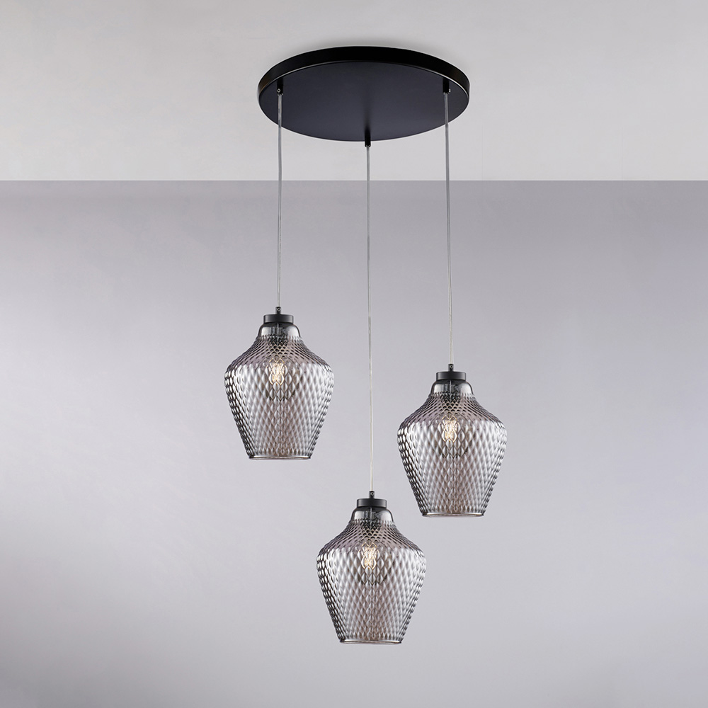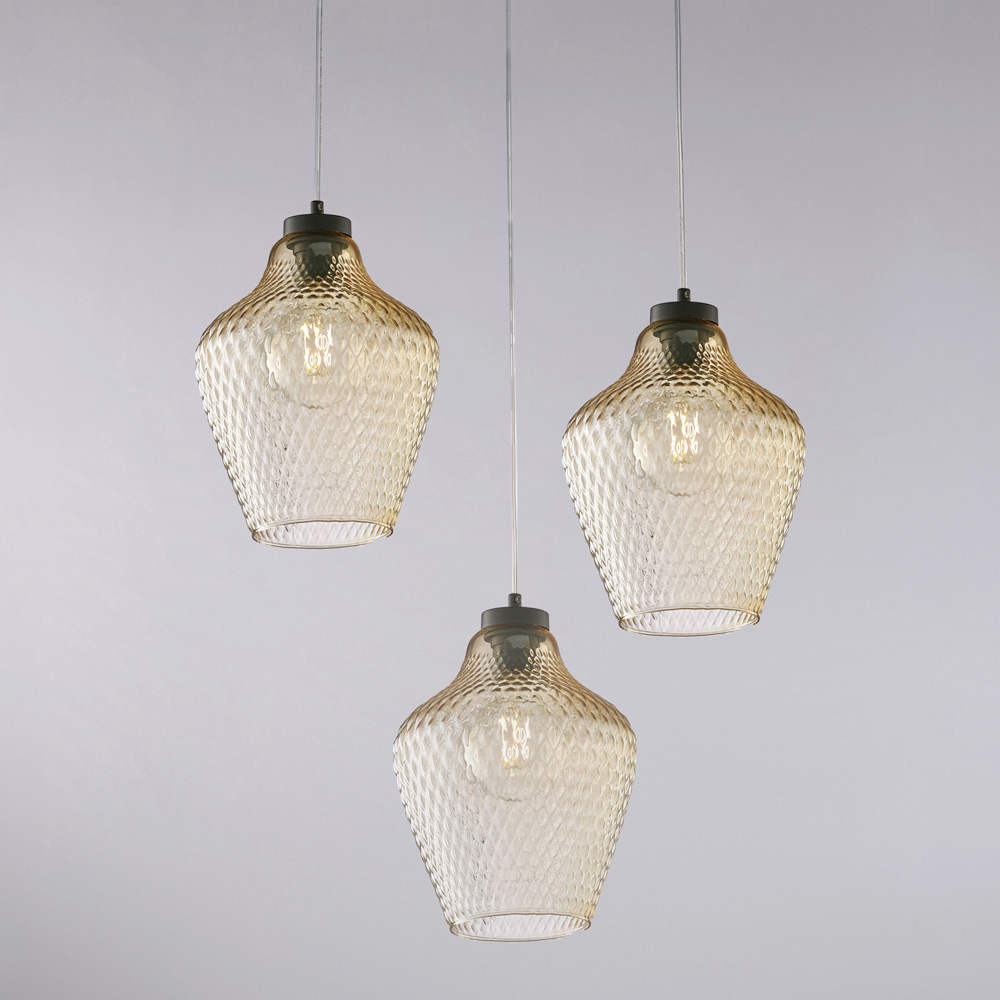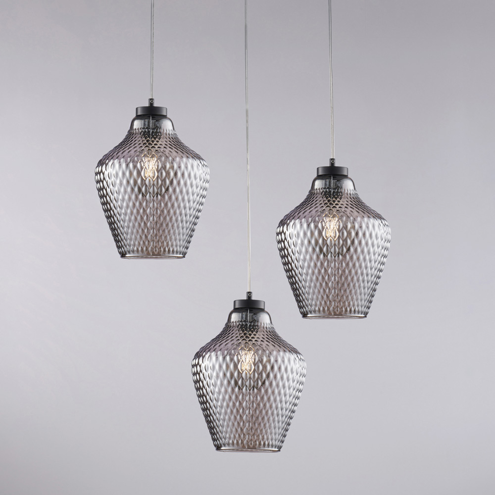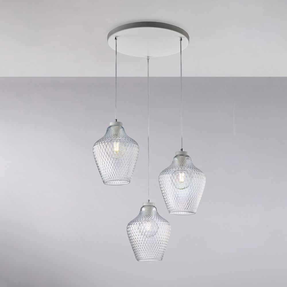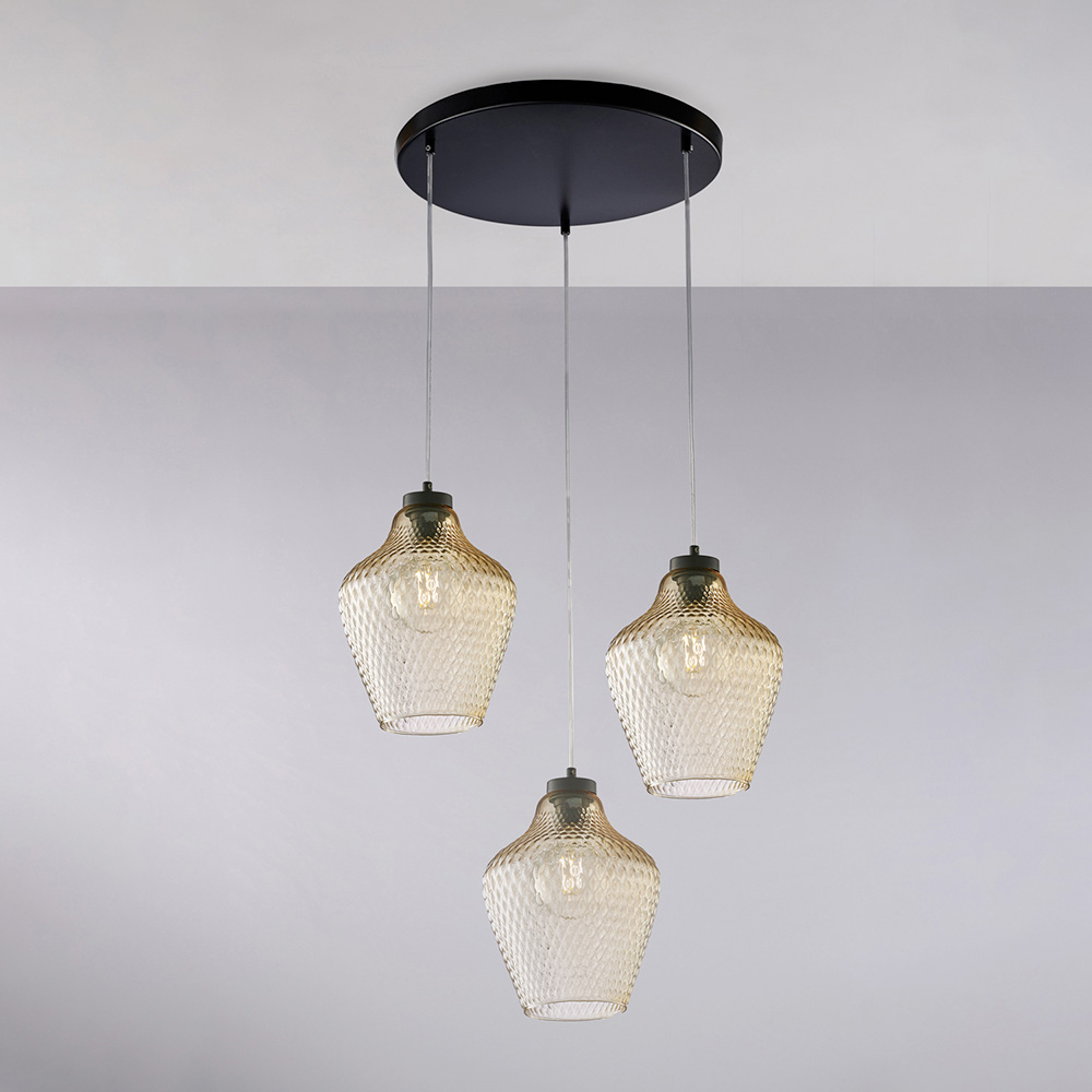 Alnitak pendellampe i glas og metal med 3 lys