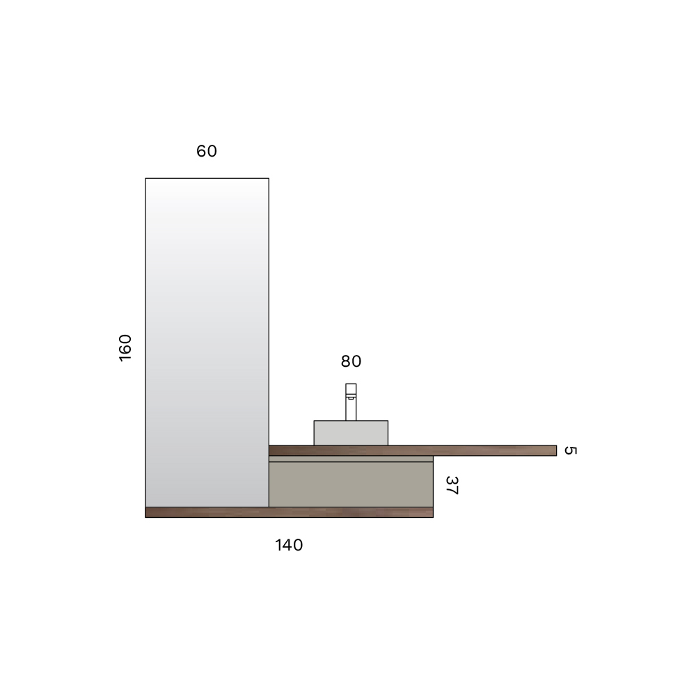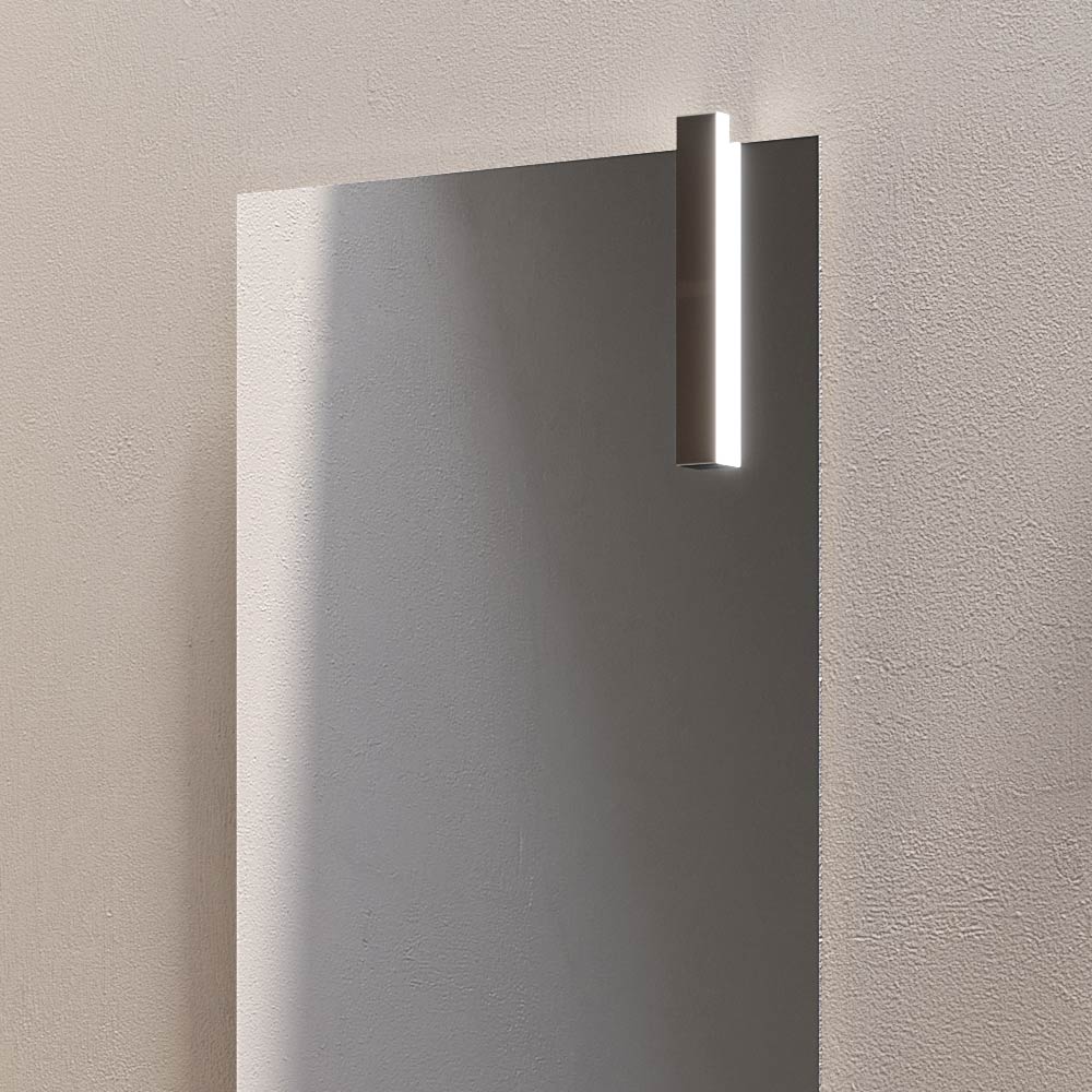 Spejlet på 160x60 forstærker rummets lysstyrke, mens LED-lampen med forkromet finish sikrer præcis og elegant belysning, ideel til vaskeområdet.