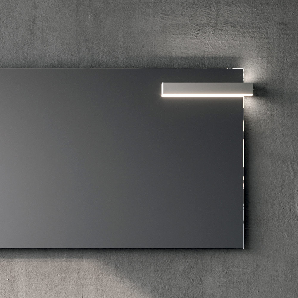 Det rektangulære spejl med LED-belysning sikrer et ensartet og funktionelt lys, perfekt til hverdagsaktiviteter, samtidig med at det bidrager til at fremhæve rummets rene linjer og dybde.
