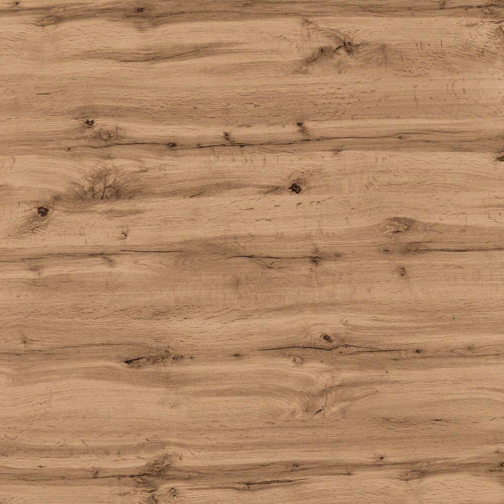 Den blanke hvide håndvaskplade lyser rummet op og skaber en raffineret kontrast til træet, hvilket giver en slidstærk og rengøringsvenlig overflade, der er designet til hverdagsbrug.