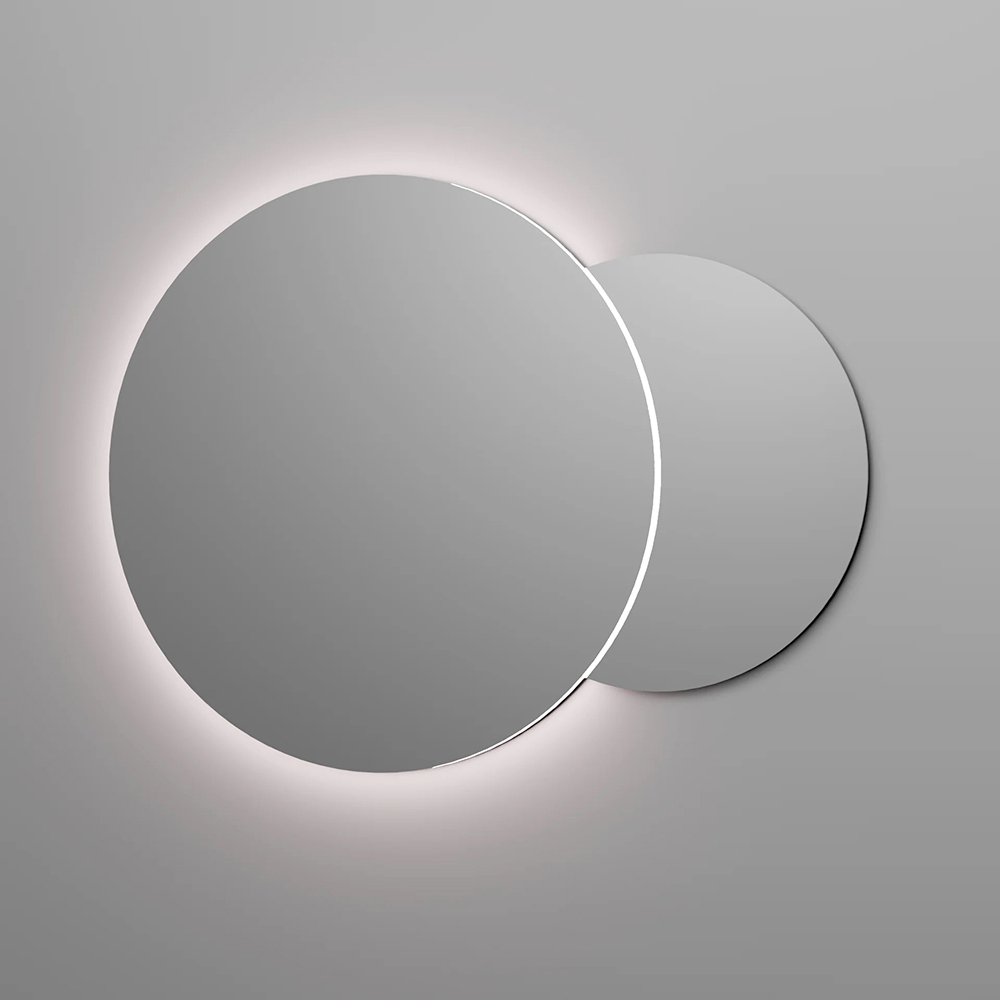 De to baggrundsbelyste spejle forstærker rummets lysstyrke og skaber en sofistikeret og omsluttende atmosfære. Det integrerede lys definerer volumen og bidrager til et moderne og funktionelt rum.