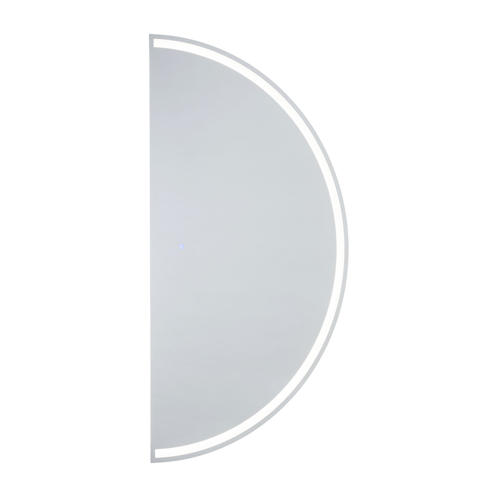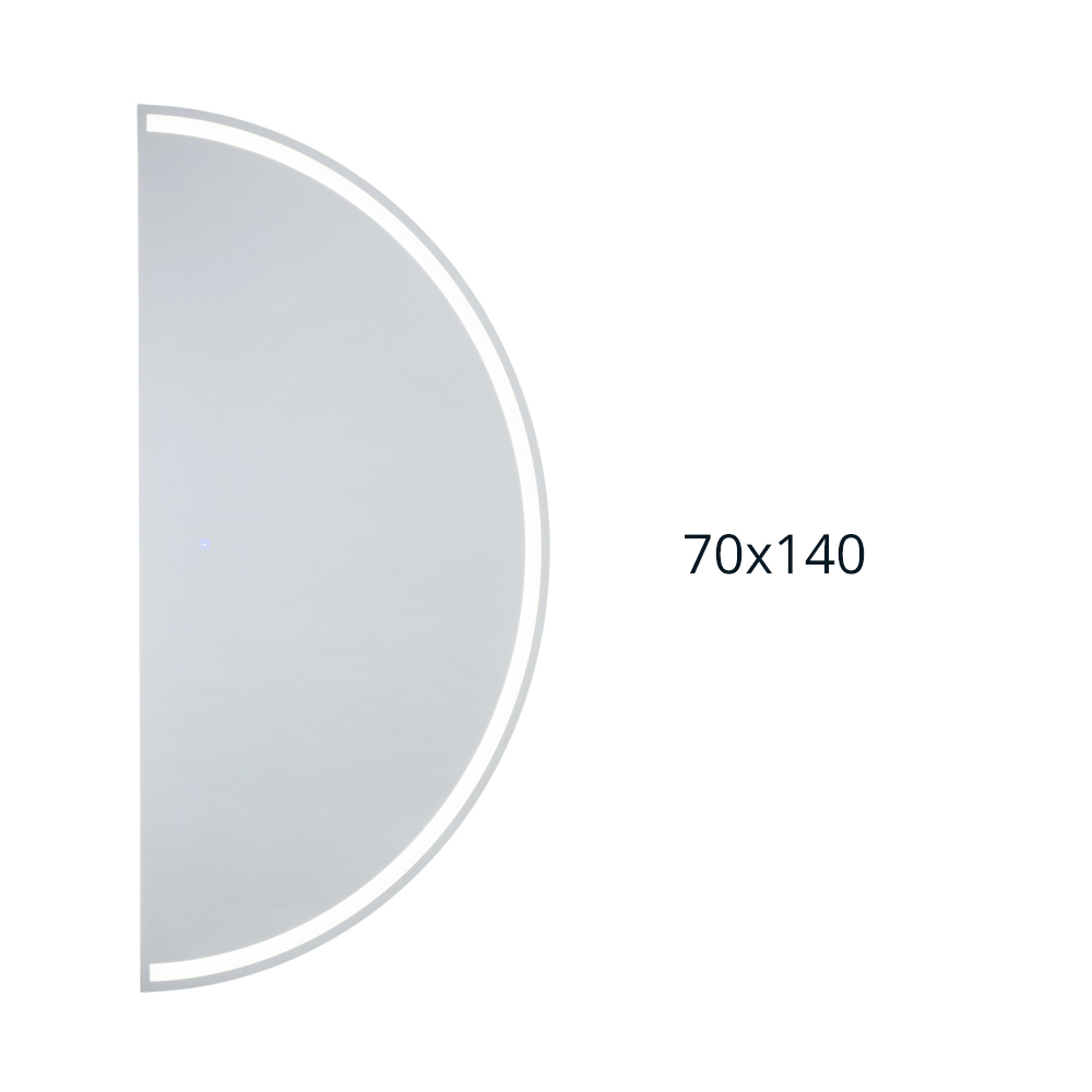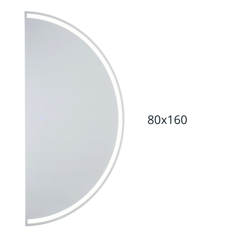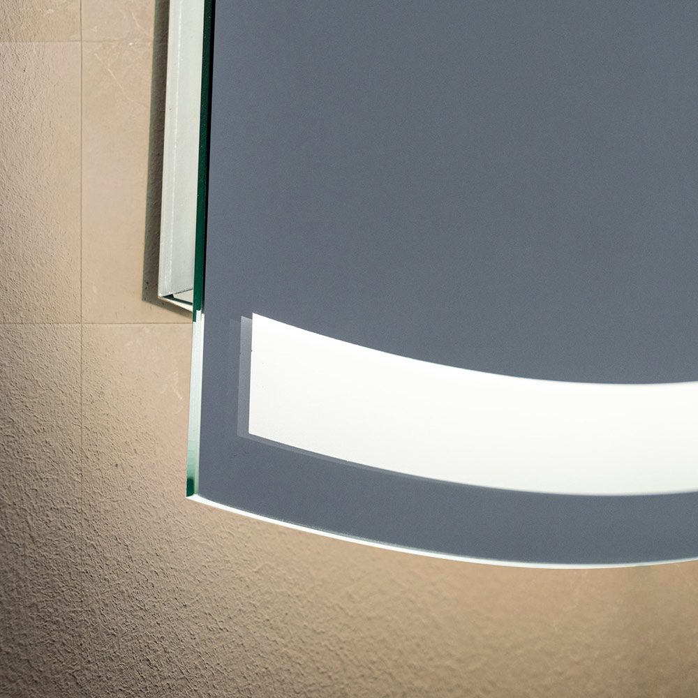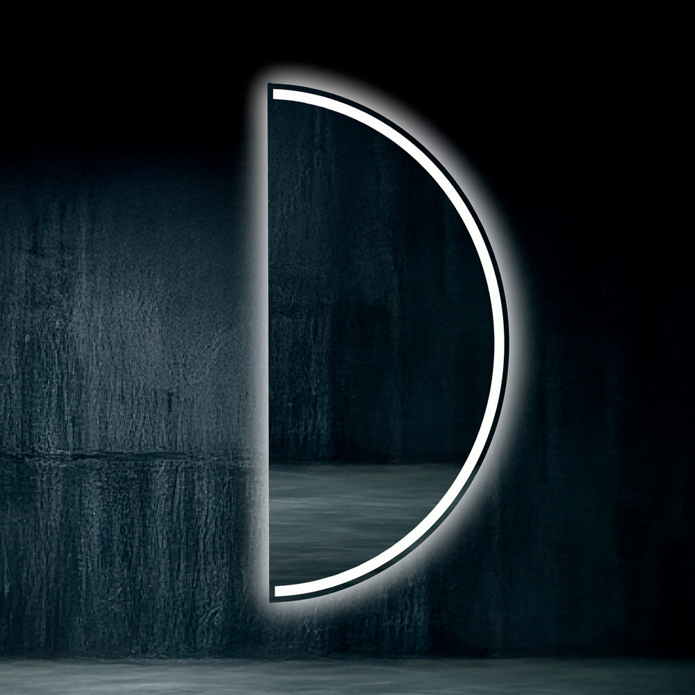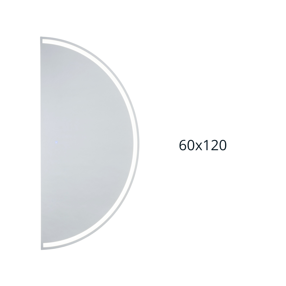 Et møbeltilbehør, der overgår sin simple reflekterende funktion og forvandler sig til et ægte designelement . Dette badeværelsesspejl med en minimalistisk halvcirkelform og en raffineret integreret LED- lysramme er designet til at berige rummet med et dramatisk og moderne præg.