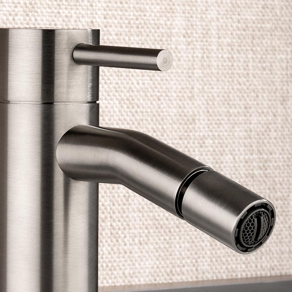 Denne elegante bidetarmatur kombinerer moderne design og praktisk funktionalitet , hvilket gør den til et perfekt valg til dit badeværelse. Dens rustfri stålfinish sikrer ikke kun et moderne og minimalistisk udseende, men tilbyder også overlegen korrosionsbestandighed og nem rengøring.
