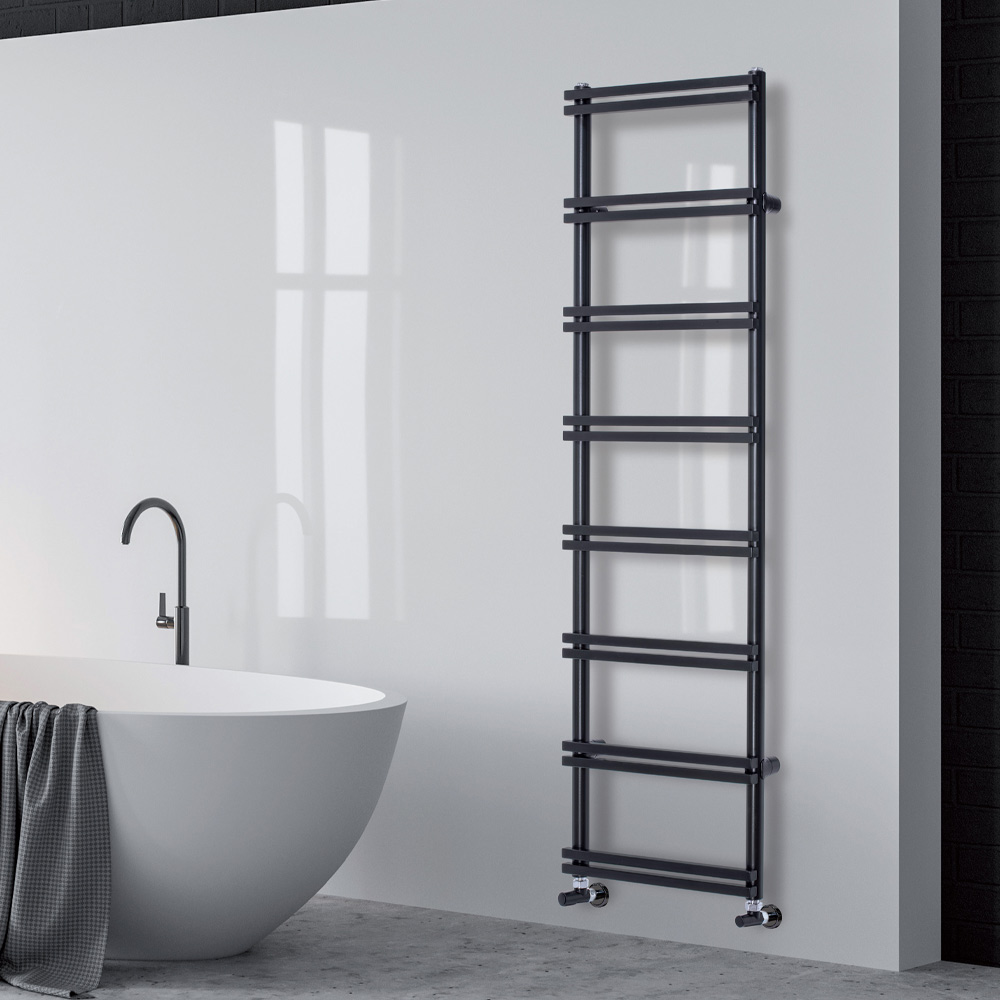 Håndklædevarmer i blandet kulstofstål. Fremstillet i Italien.
