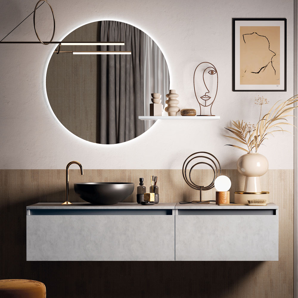 De dyrebare materialer og raffinerede løsninger forbedrer de hjemlige omgivelser og fremhæver deres funktionalitet og sansemæssige glæde. Bevæger sig mellem strenge geometriske former og en meget mere original rumstyring, vil de helt nye linjer altid designe et ordnet miljøhvor du skal passe på dig selv.