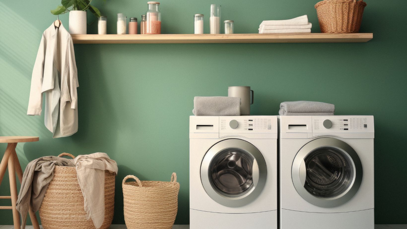 Skabe og hylder : Brug overskabe til at opbevare rengøringsmidler, skyllemidler og andre rengøringsmidler. Hylder kan give ekstra plads til mindre brugte genstande eller til at holde håndklæder og viskestykker lige ved hånden.