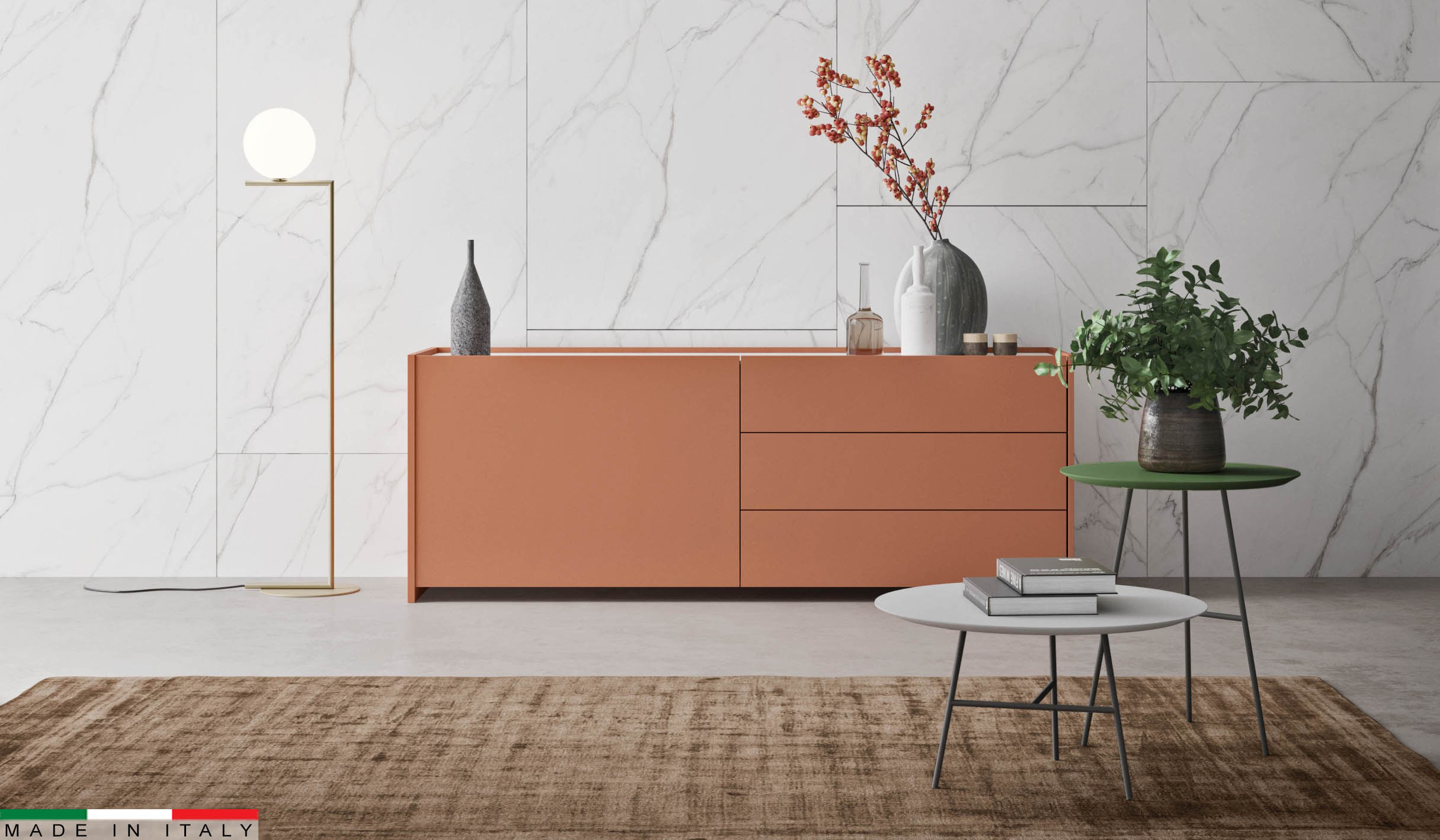 Skænke, der om nødvendigt kan omdannes til tv-skabe designet med døre og skuffer med praktiske åbningssystemer til et funktionelt og sofistikeret møbel. Farverne og finishene kan tilpasses fuldstændigt, og valget er stort.