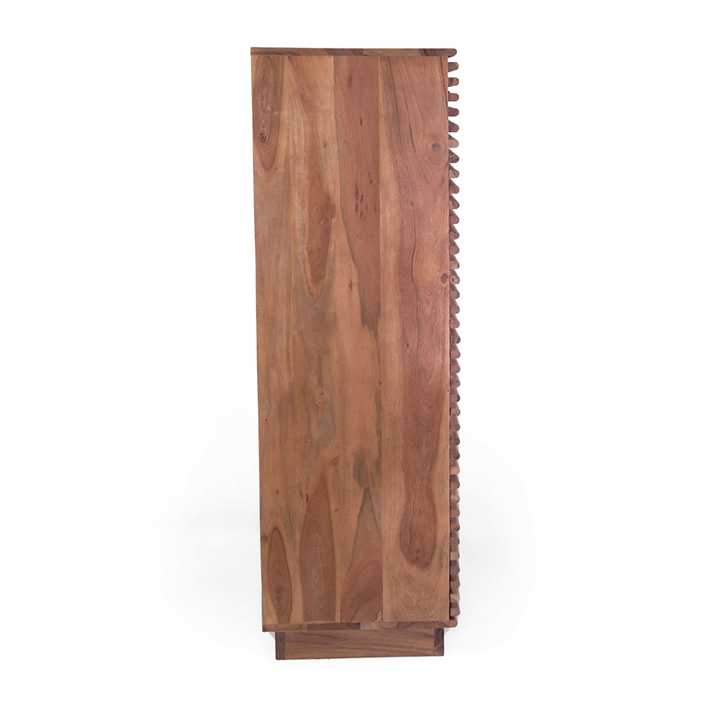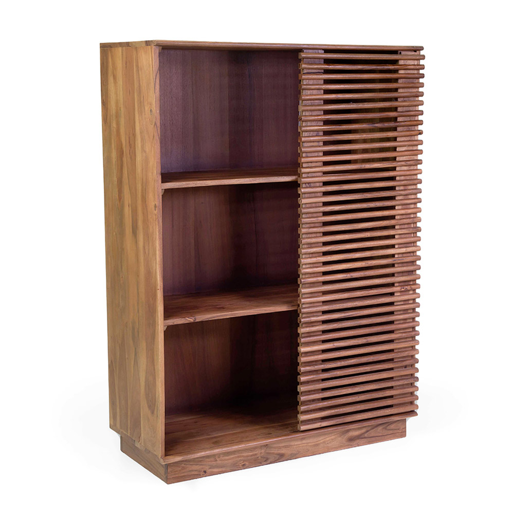 Bring elegance og funktionalitet til dit hjem med denne reol i akacietræ med en praktisk skydedør . Akacietræ med sine naturlige årer og varme toner gør dette møbel til et unikt og sofistikeret møbel.