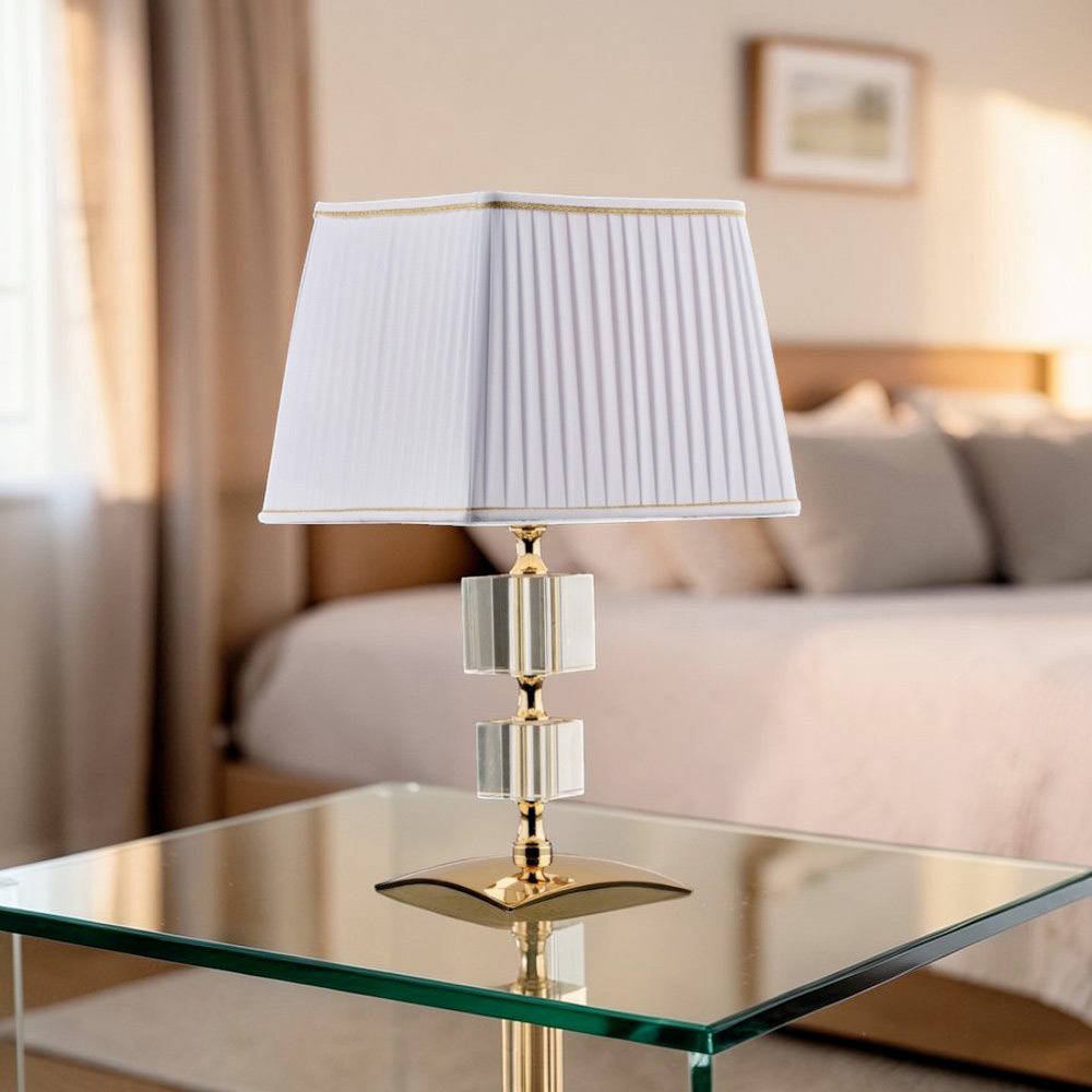 Krystal-/poleret guldfinish fremhæver materialernes glans og giver disse lysende accessories en tidløs elegance. De er ideelle til natborde , konsolborde , raffinerede stuer , elegante soveværelser og luksuriøse kontormiljøer og er et autentisk udtryk for italiensk håndværk .