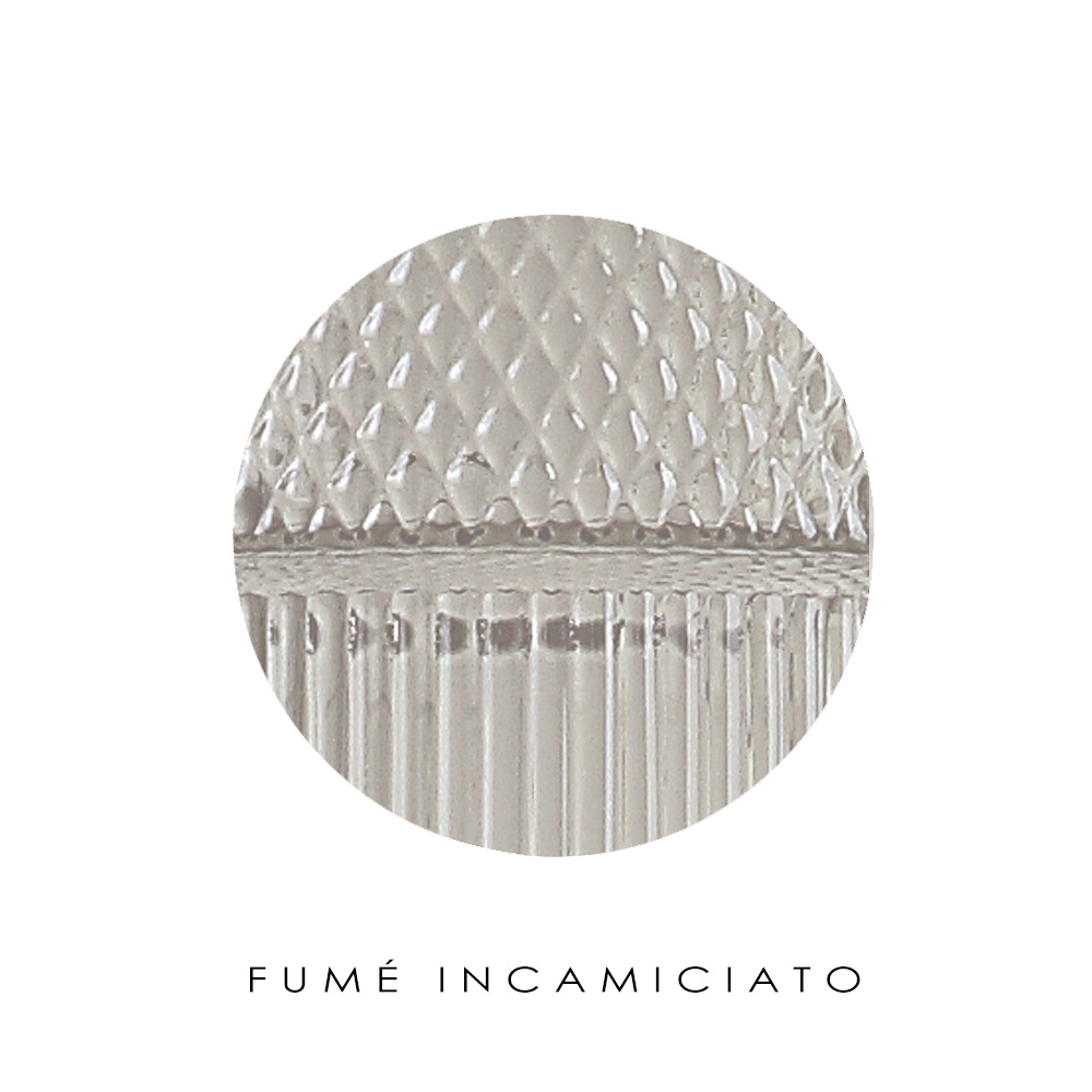 lagdelt eller gennemsigtigt glas med stribet bearbejdning ideel til dem, der leder efter en klassisk og funktionel belysning, der er i stand til at berige miljøet med fascinerende lysspil.