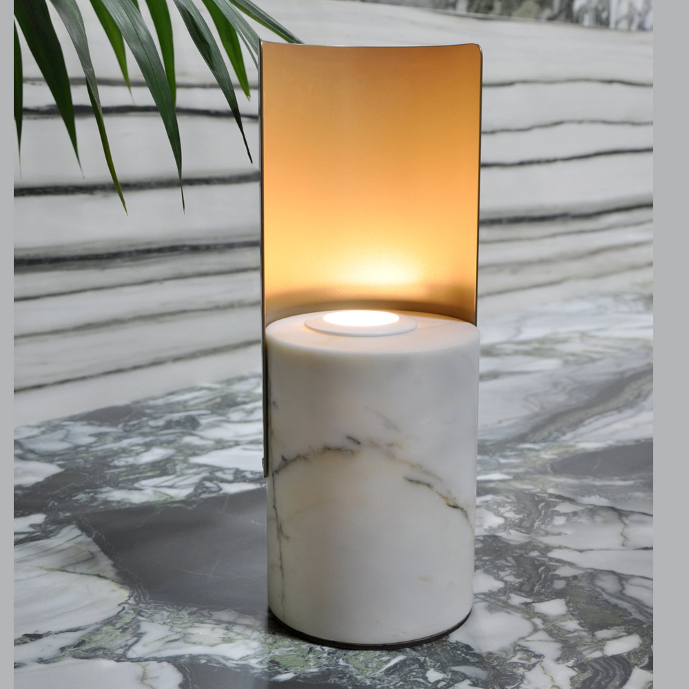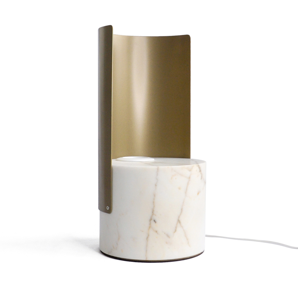 Forestil dig en lyskilde, der på samme tid er et kunstobjekt: her er denne marmorlampe , en kreation, der kombinerer marmors naturlige elegance med metallets varme luminescens. Den solide og omhyggeligt udformede marmorbase understøtter en metalskærm, der spreder et indbydende og varmt lys, designet til at skabe et afslappende og sofistikeret miljø.