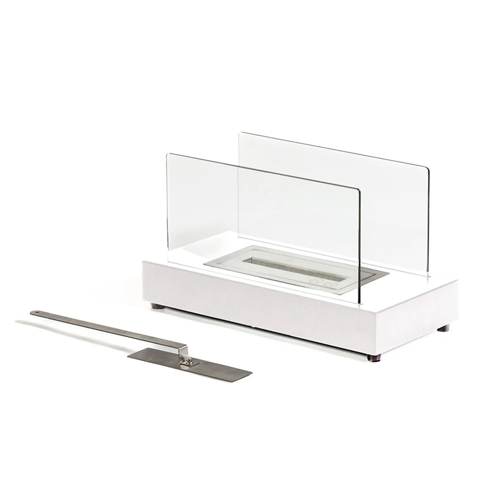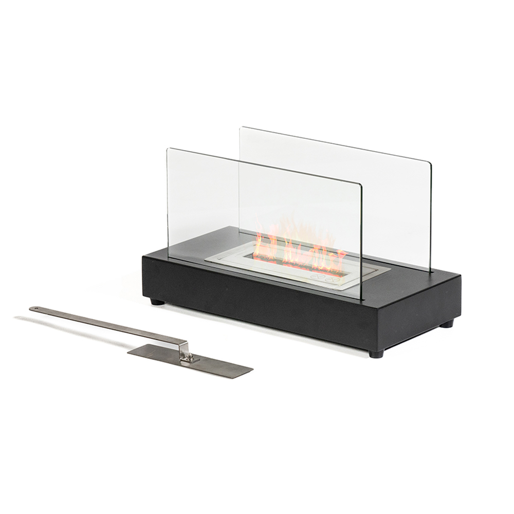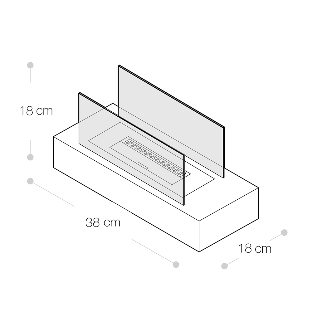 Strukturen er lavet af metal, og det hærdede glas beskytter flammen mod mulige vindstød og fremhæver den; dette gør den også velegnet til udendørs omgivelser.
