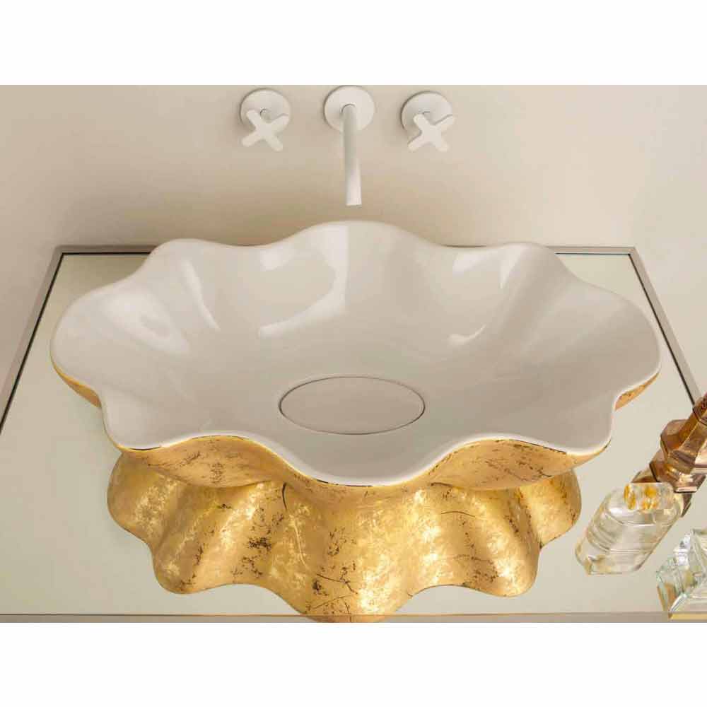 Design håndvask i hvid og guld keramik Cubo fremstillet i Italien