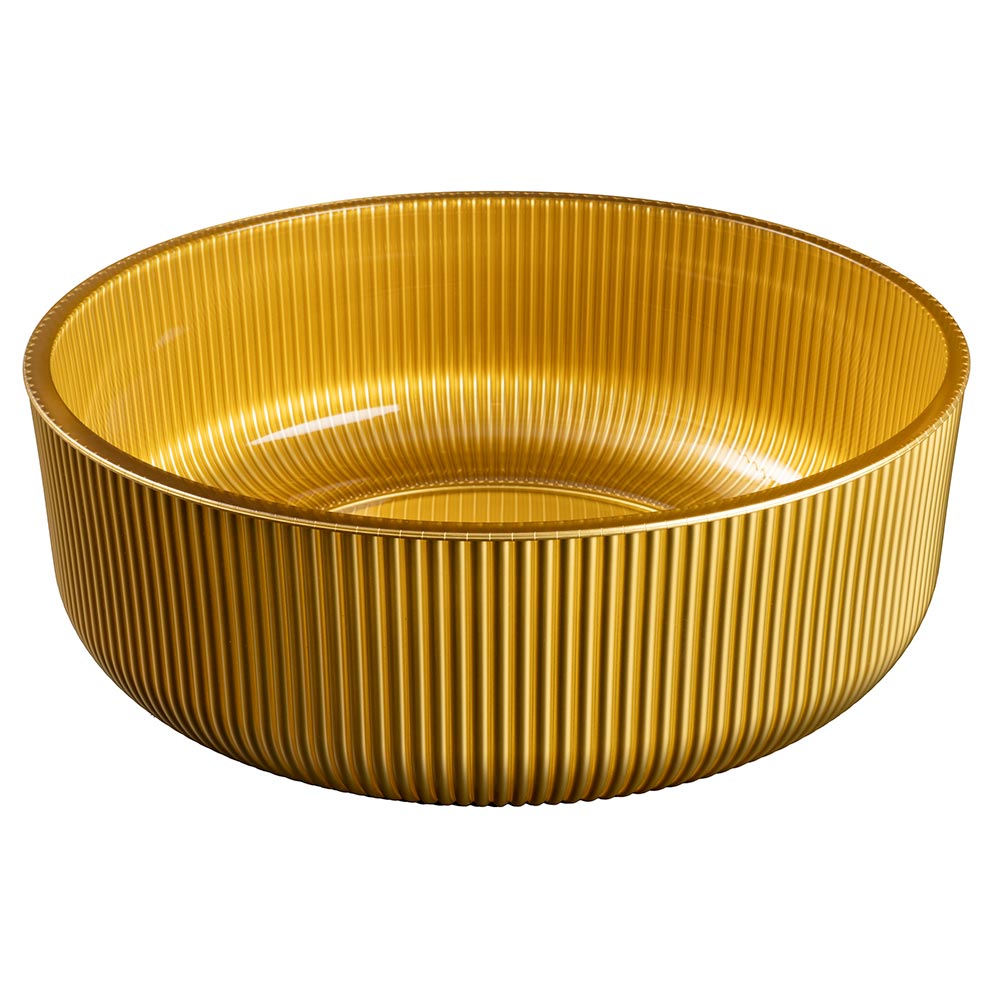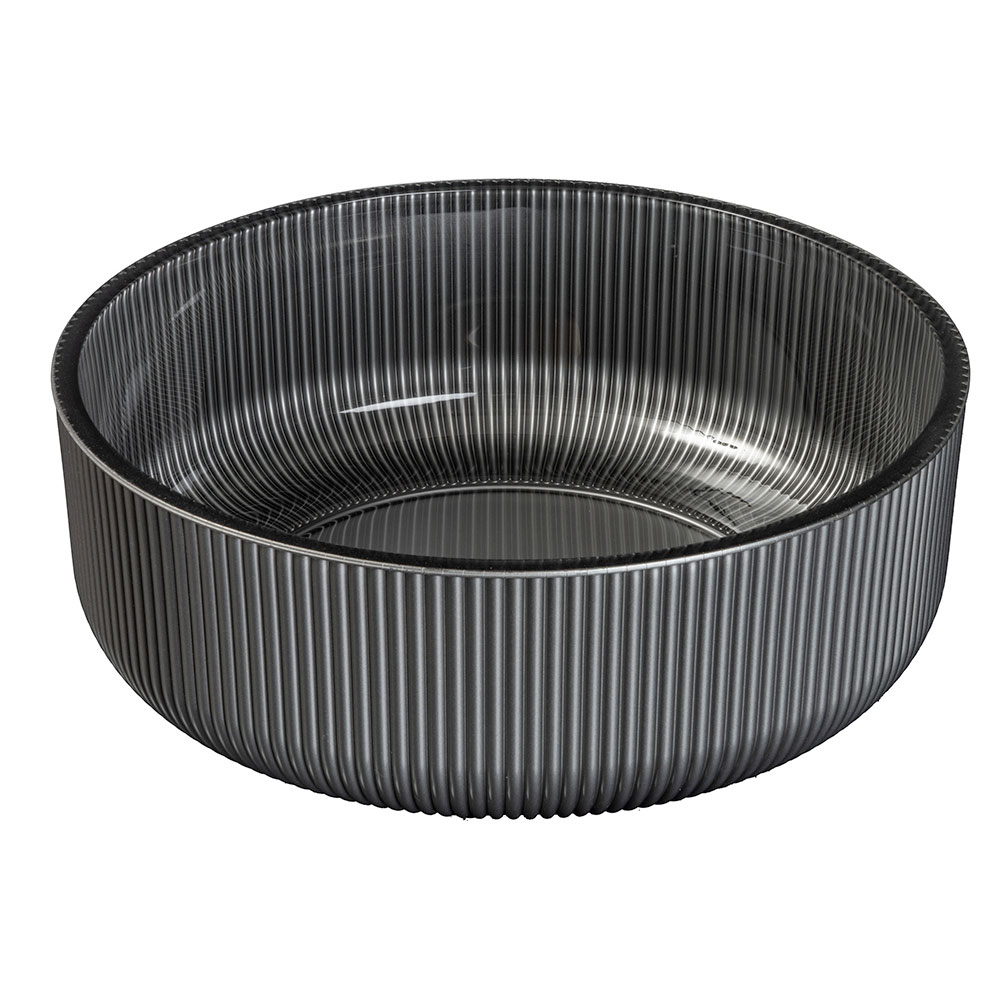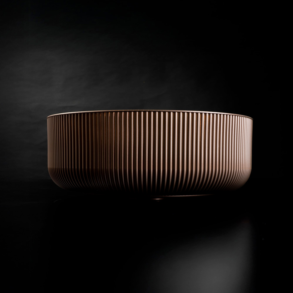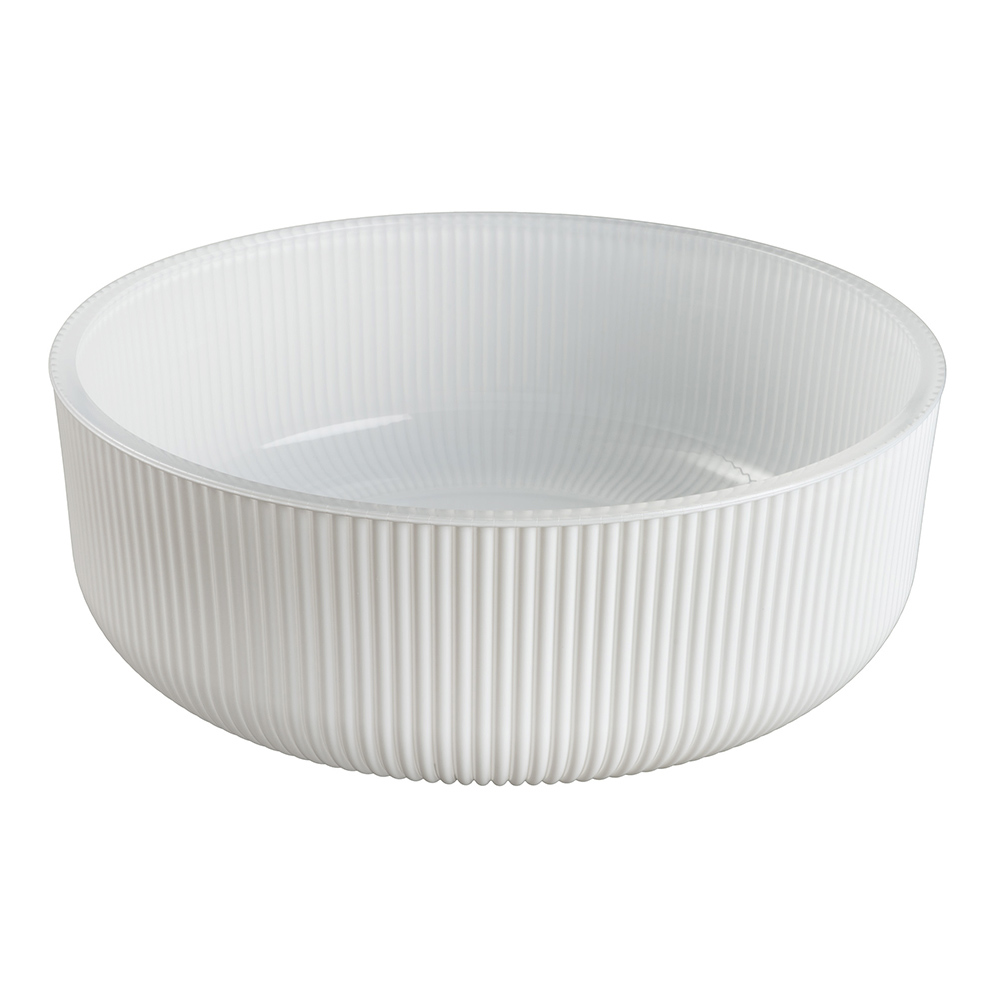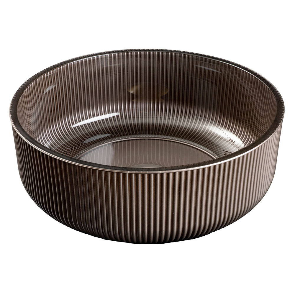 Denne venetianske glasvask , der er et møbelelement, der bliver badeværelsets hovedperson, kombinerer håndværksmæssig mesterskab med den æstetiske raffinement, der er typisk for Made in Italy . Den er fremstillet af harpiksbelagt og malet glas med fine finish og skiller sig ud med sin ydre overflade med et elegant stribet mønster , der skaber unikke lys- og refleksionsspil.
