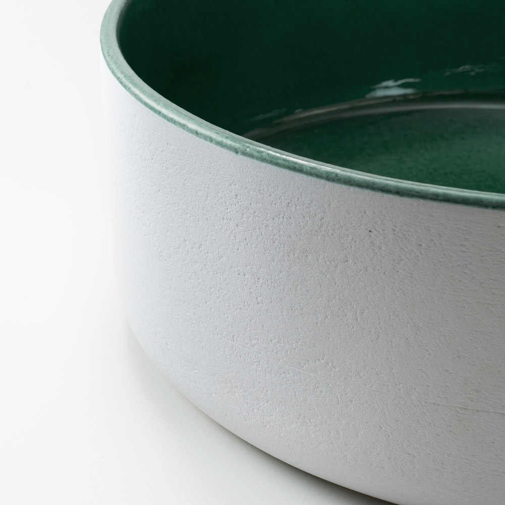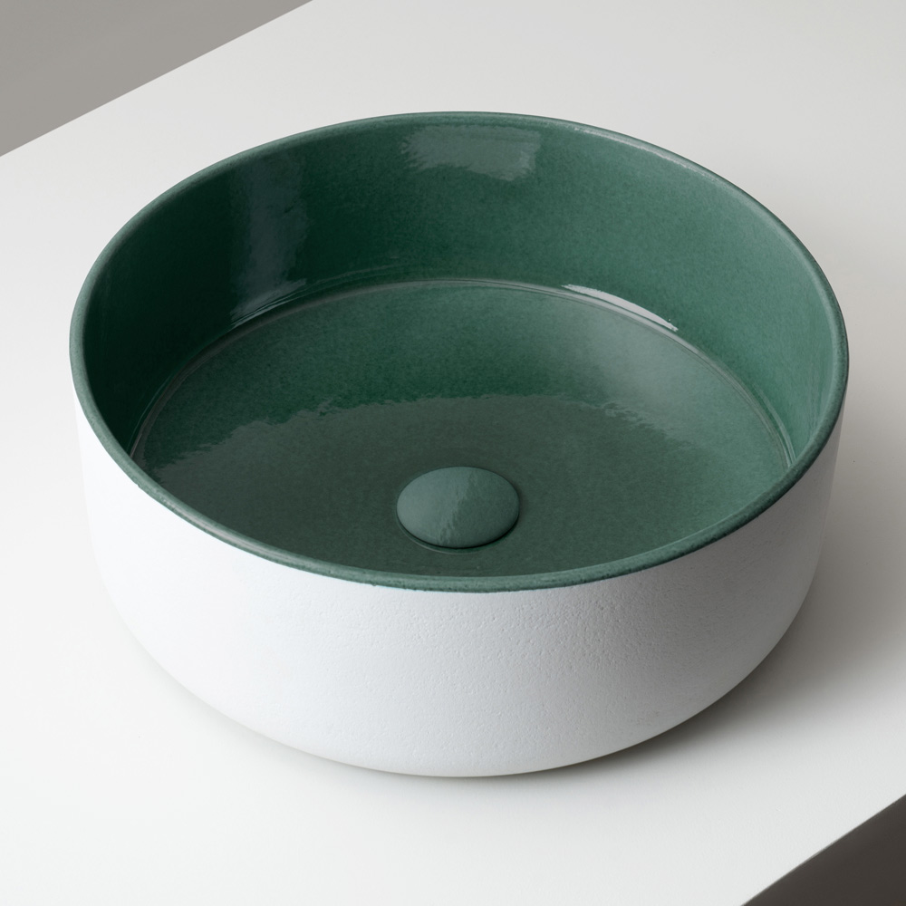 De forskellige kombinationer af emaljer og naturlige overflader skaber raffinerede kontraster mellem indvendigt og udvendigt, hvilket gør hver vask til et både dekorativt og funktionelt element.