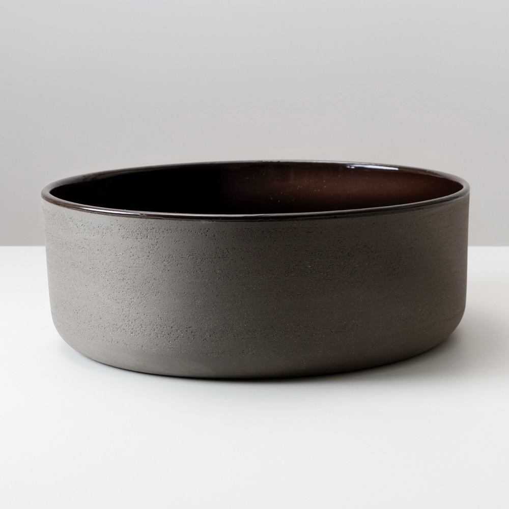 Bordvasken er lavet af naturlig jord og skiller sig ud med sine enkle former og den stærke tekstur på overfladen. Et designstykke, der kombinerer håndværk og æstetisk forskning, designet til at forbedre badeværelset med moderne elegance.