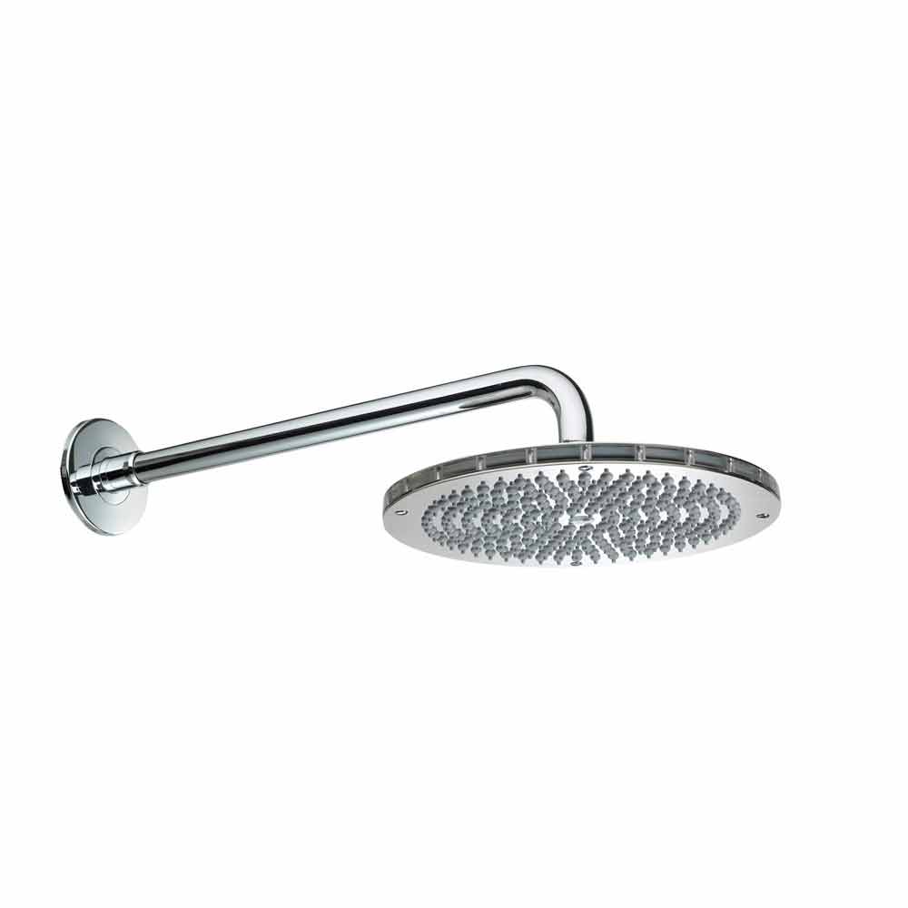 Sæt sammensat af: Dream Oki brusehoved Ø 300 mm, selvrensende, med 90 ° messing brusearm Ø 28 x 500, med 1/2 M rosevindue.