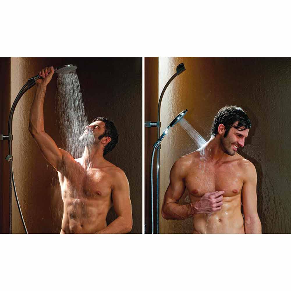 c / indbygget vandforbindelse, MIXA / 3 FITAIR brusebad Ø 140 mm, dobbelt aggr messingslange 150 cm, 1/2 FF konisk.