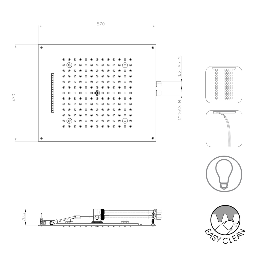 - Dream/2 brusehoved med to funktioner (regn og kam vandfald) med RGB LED lys