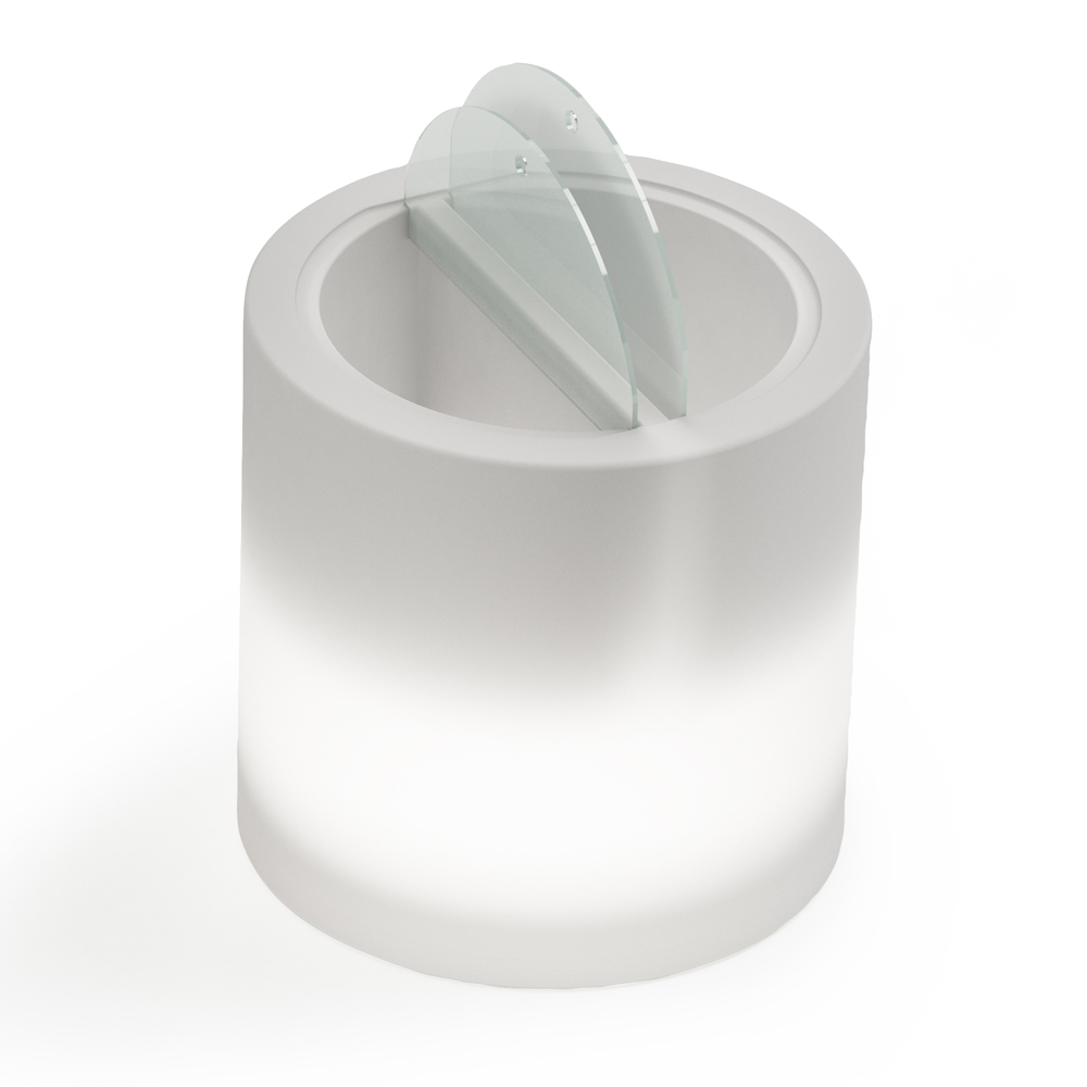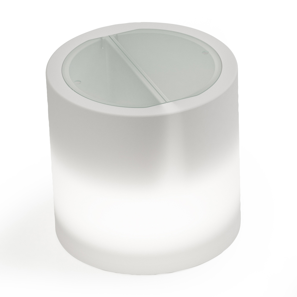 Dette havebord er fuldstændigt bearbejdet og lavet i Italien i polyethylen med hvidt lys og er udstyret med en beholder opdelt i to rum med plexiglas låg . Disse to rum har lidt forskellige størrelser, så de kan bruges til forskellige formål lige fra opbevaring af mad og drikke til brug af is. I sidstnævnte tilfælde er den mindre bakke udstyret med et sæt til at dræne overskydende vand for at bevare friskheden.