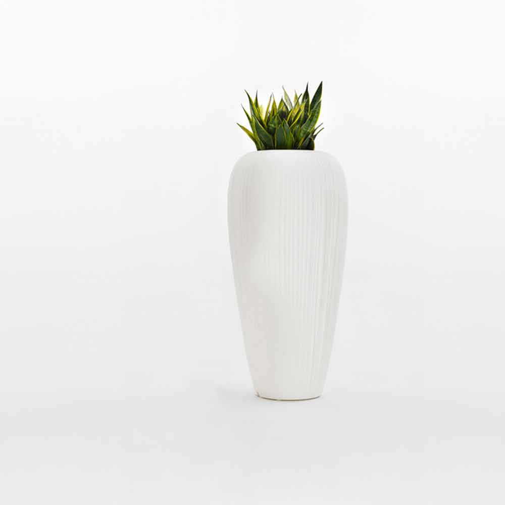 Hud er en familie af vaser med en lineær form, dens charme er skjult bag dens tekstur, der udløser ønsket om at røre ved dem. Den eksklusive finish er inspireret af observation af de detaljer, som det naturlige miljø lever af, hvilket afslører tilsyneladende usynlige, men ikke ubetydelige detaljer og geometrier: alt har sin egen hud. Skin er familien af vaser, der integrerer Myyour-samlingen. Jordfastgørelsesplade leveres.