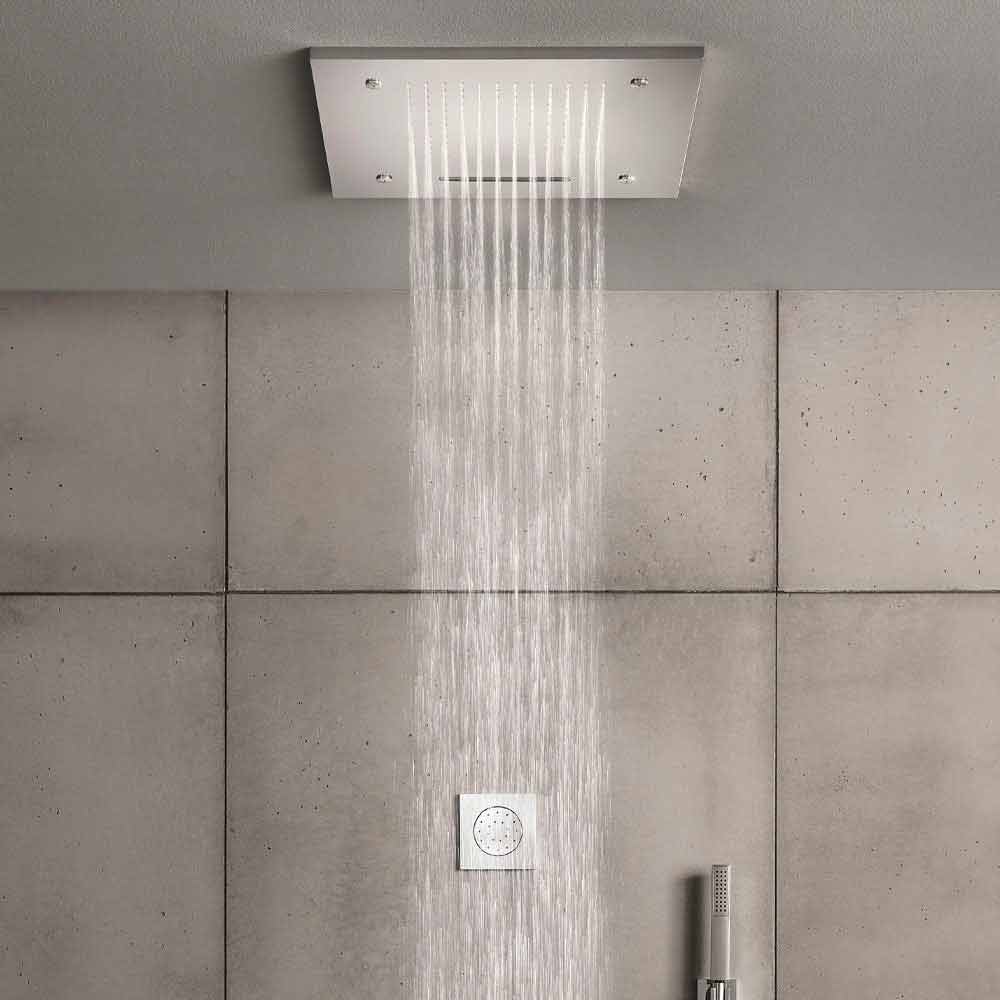 Moderne brusehoved i rustfrit stål med farveterapi, høj kvalitet Made in Italy.