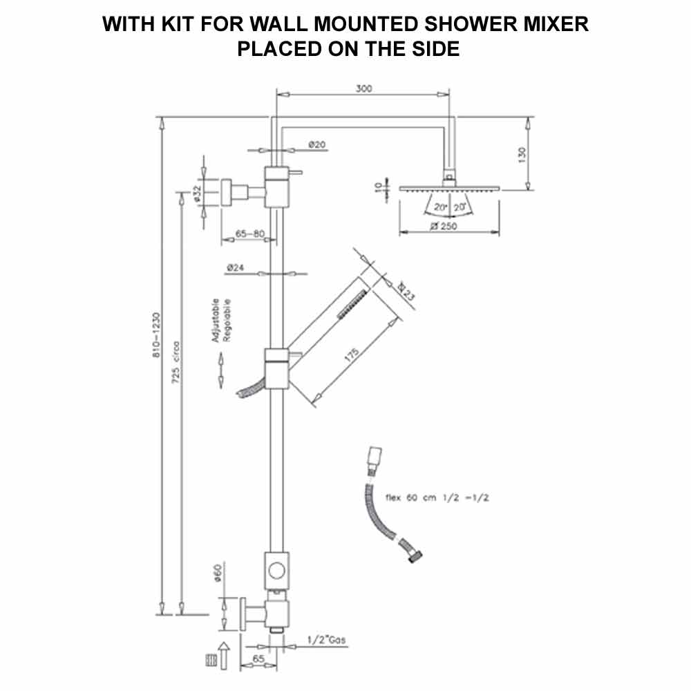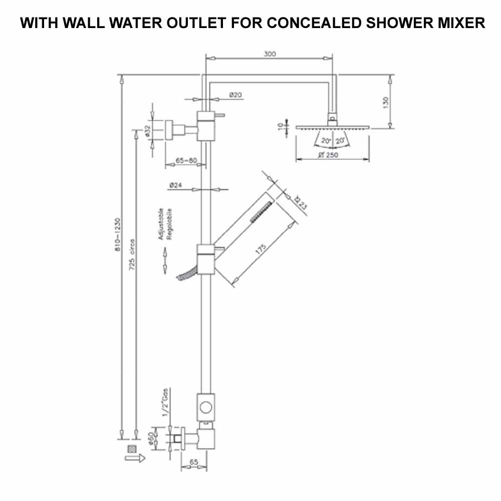 - med sæt til udvendig firkantet brusearmatur placeret sideværts;