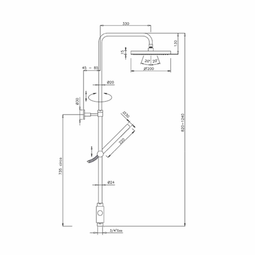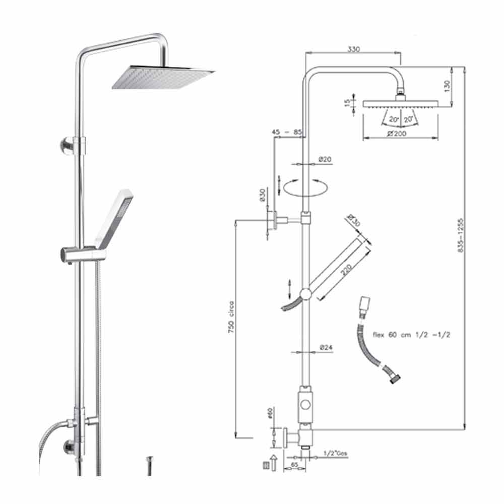 Moderne messing brusesøjle med Made in Italy ABS brusehoved og håndbruser.