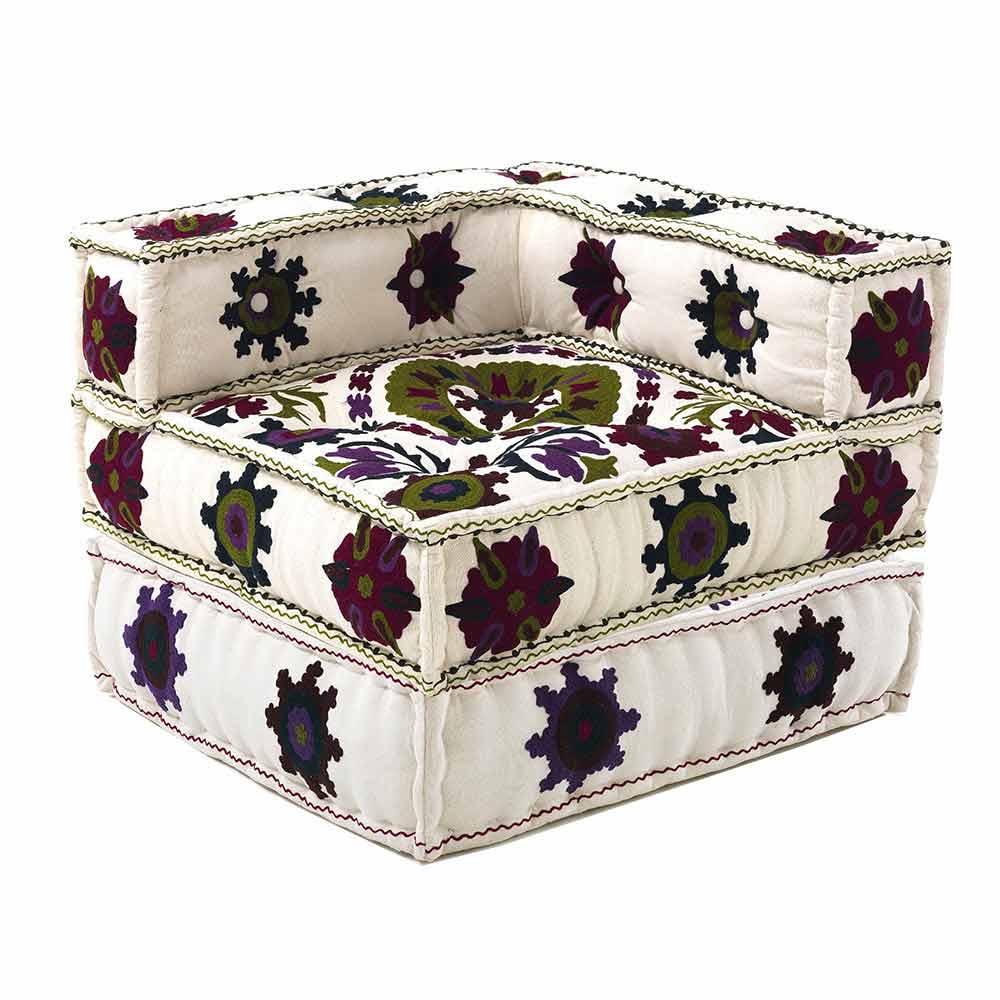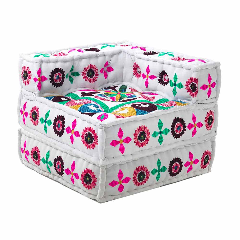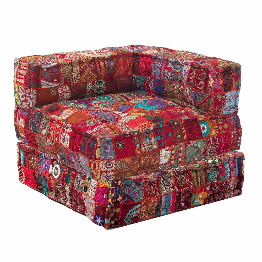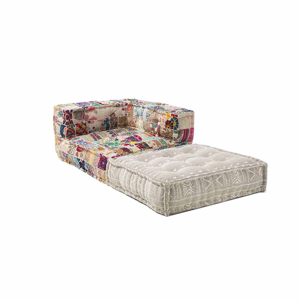 Etnisk design chaise longue lænestol i farvet patchwork-bomuld.