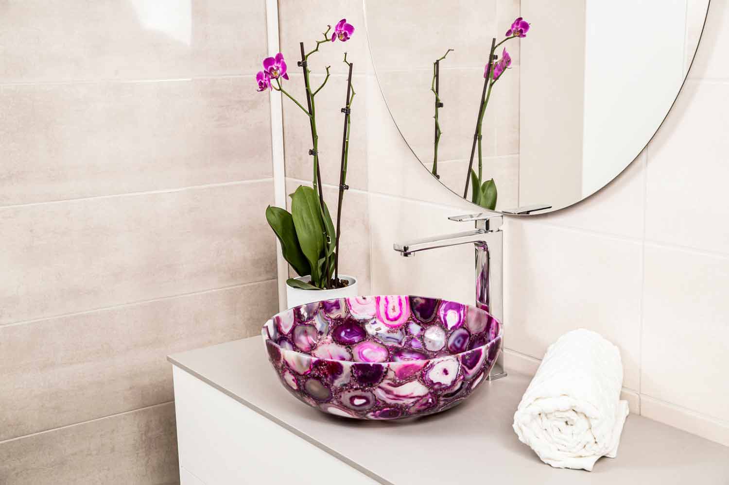 Håndlavet bordpladehåndvask lavet med agatsten.