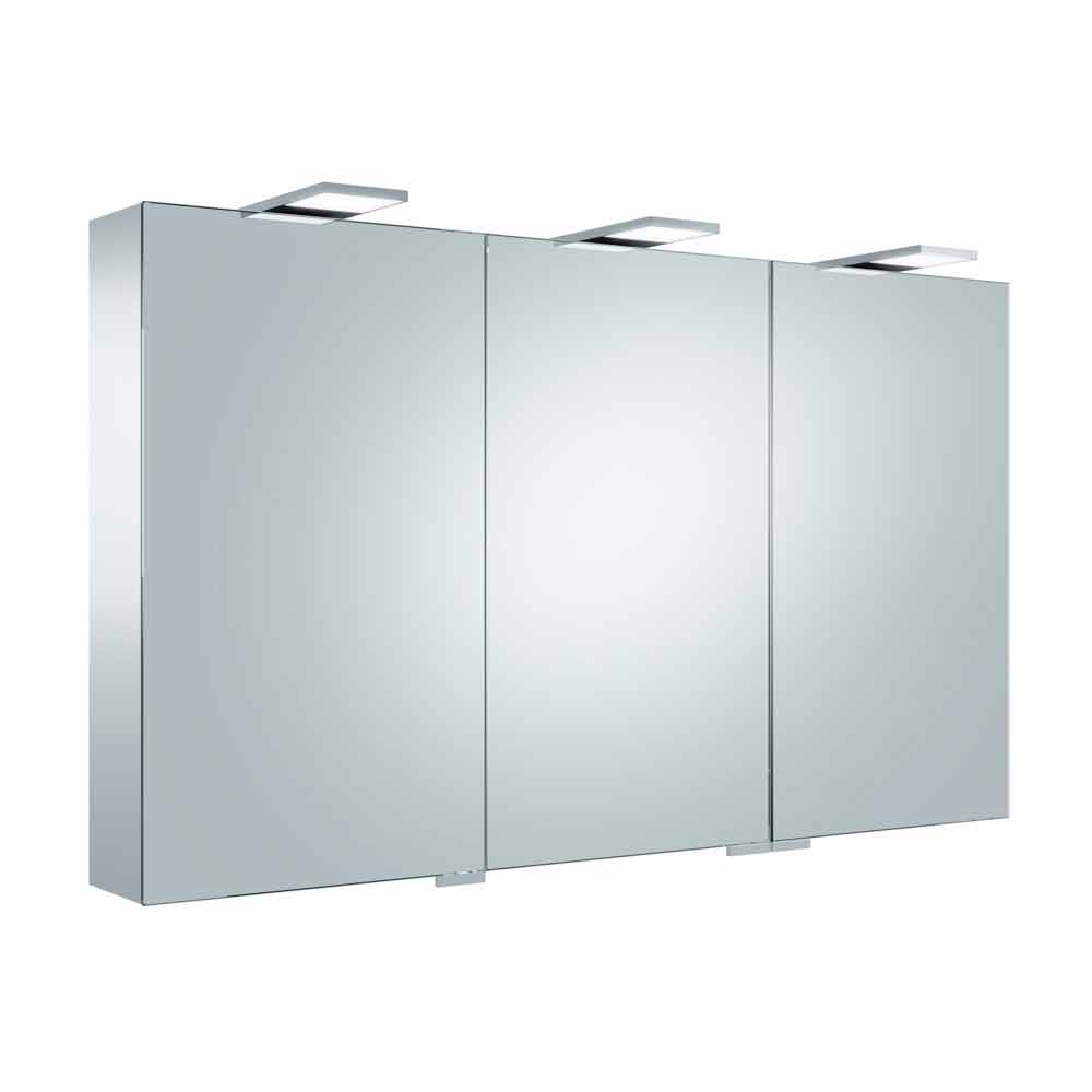 Containerspejl med 3 spejlet hængslede døre (også indvendigt) og sidespejle udstyret med LED-belysning.
