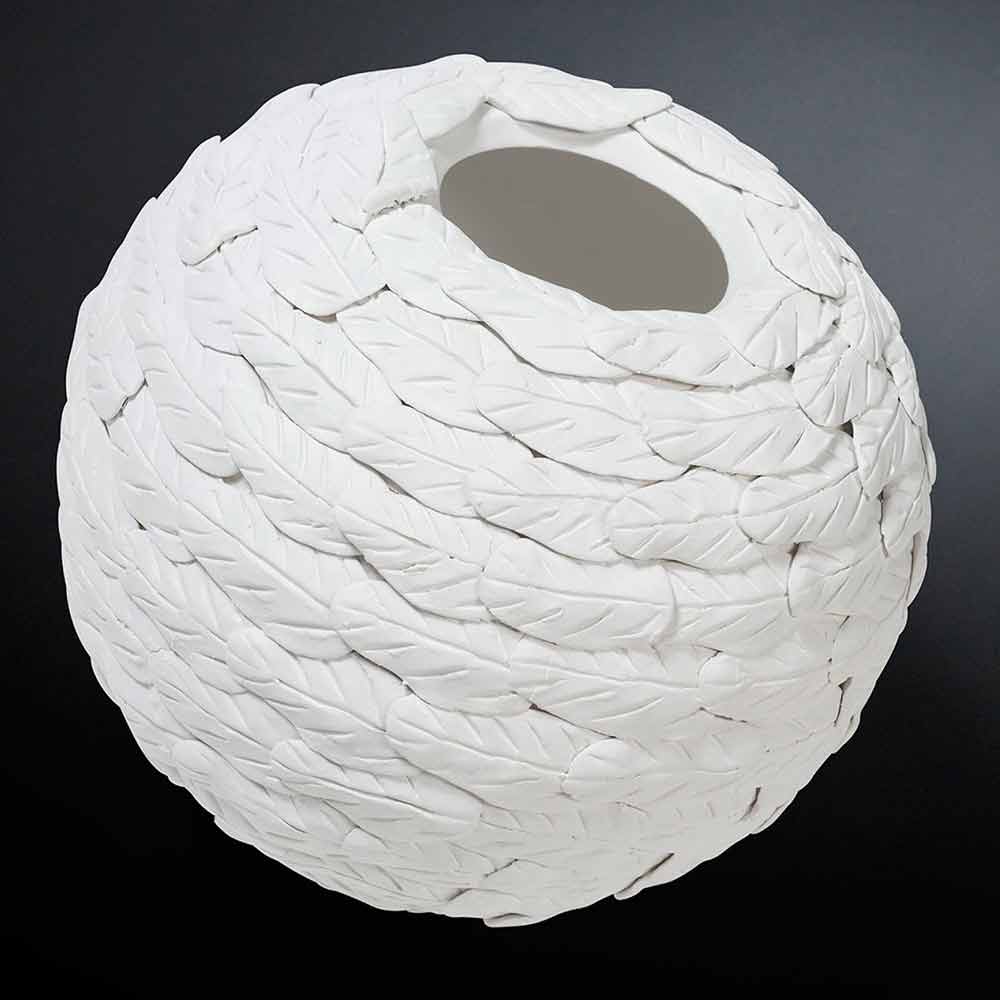 Dekorativ vase til interiør med sfærisk form i mathvid keramik, håndlavet i Italien. En idé, der kommer fra et klassisk og særligt elegant design beriget af den vidunderlige bearbejdning med bladtekstur, der dækker hele vaseens struktur, hvilket øger dens værdi og unikhed til et eksklusivt og raffineret resultat . Brug af keramik og håndværk understreger dets værdi og kvalitet, hvilket gør det i stand til at tilpasse sig enhver stilistisk situation. En ideel æstetik til de mest forskellige miljøer, lige fra boligindretning til hoteller, restauranter, kontraktområder, kurbade, men også som ramme om begivenheder og bryllupper.