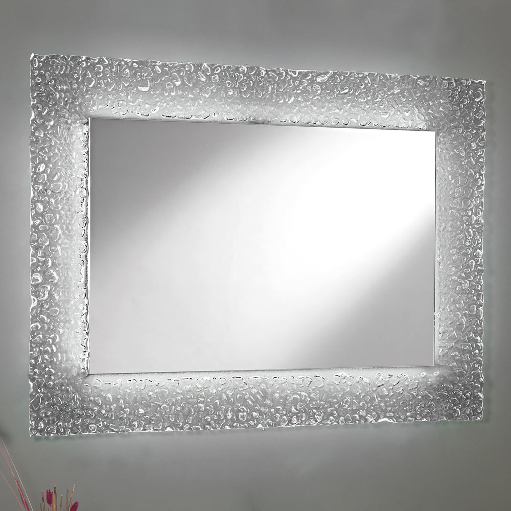 Dekorativt vægspejl med smeltet glasramme og integreret LED-belysning i høj kvalitet fremstillet i Italien.
