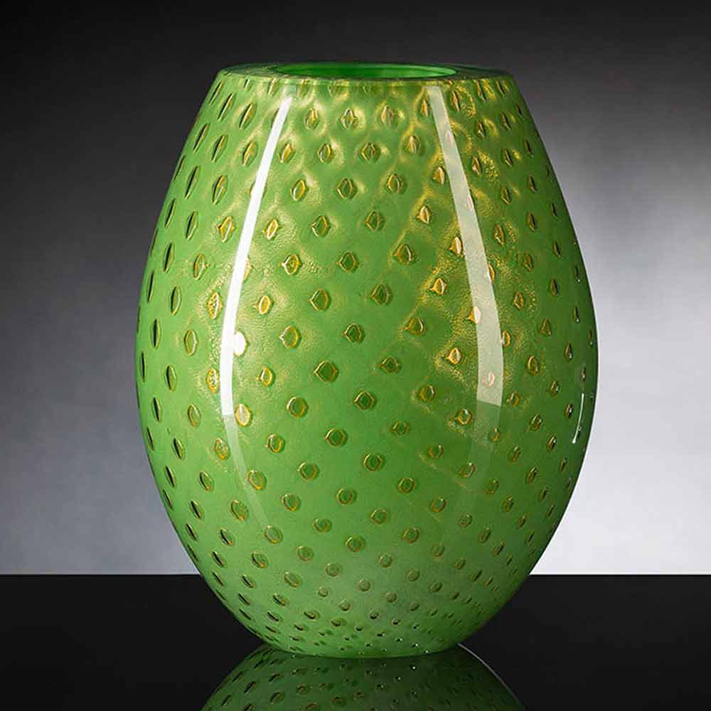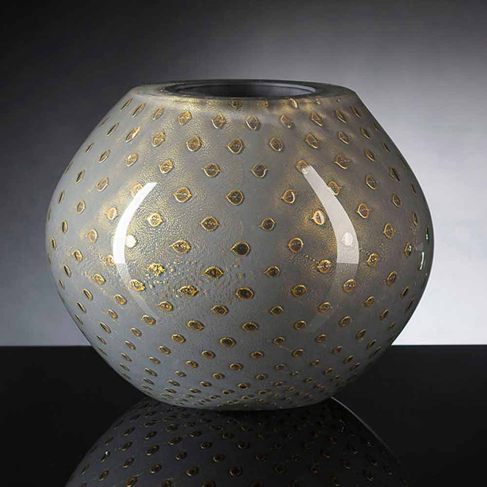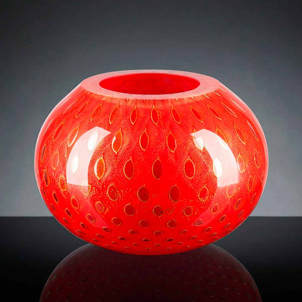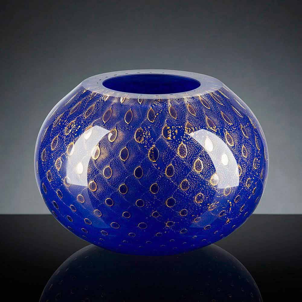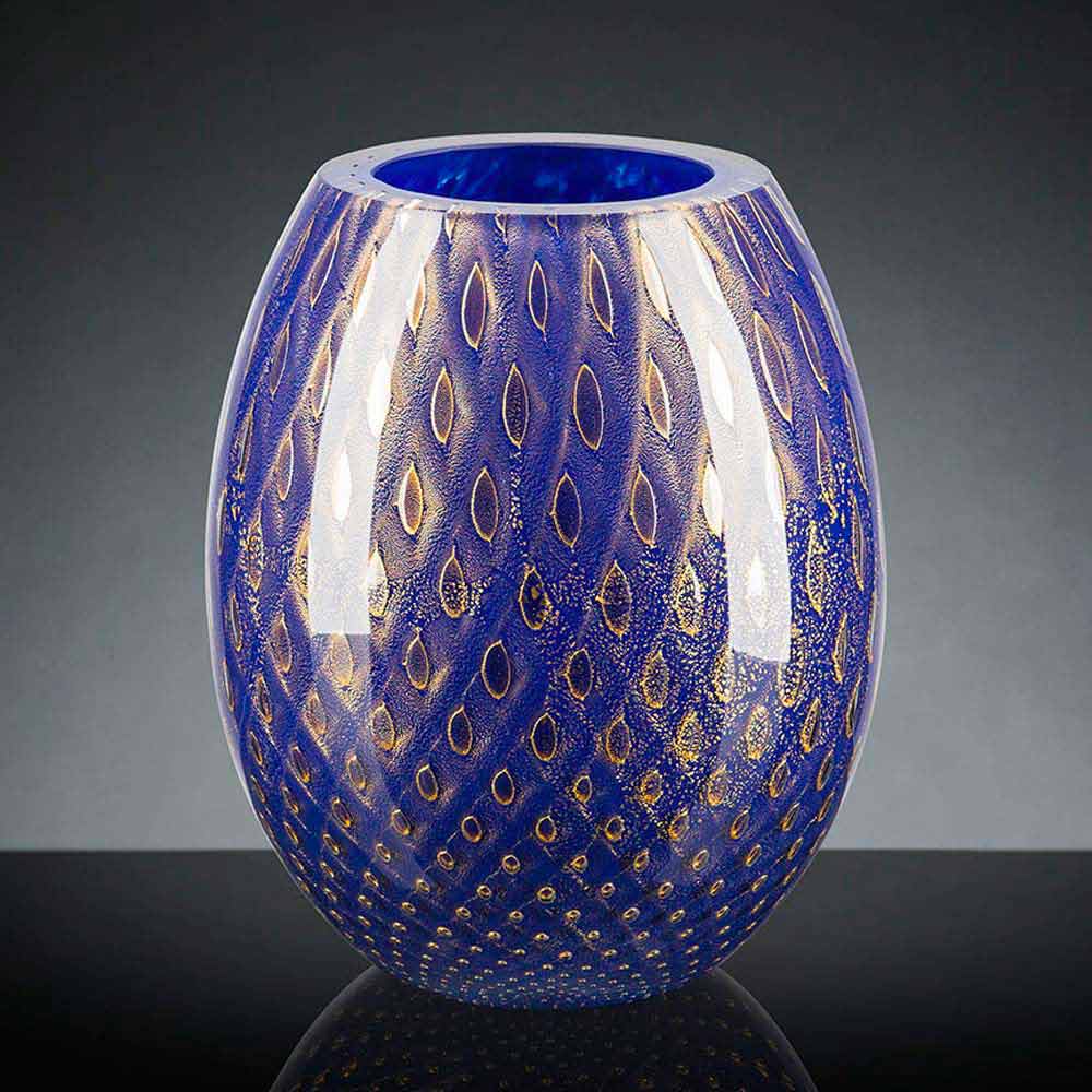 Indendørs vase i farvet Murano-blæst glas fremstillet i Italien.