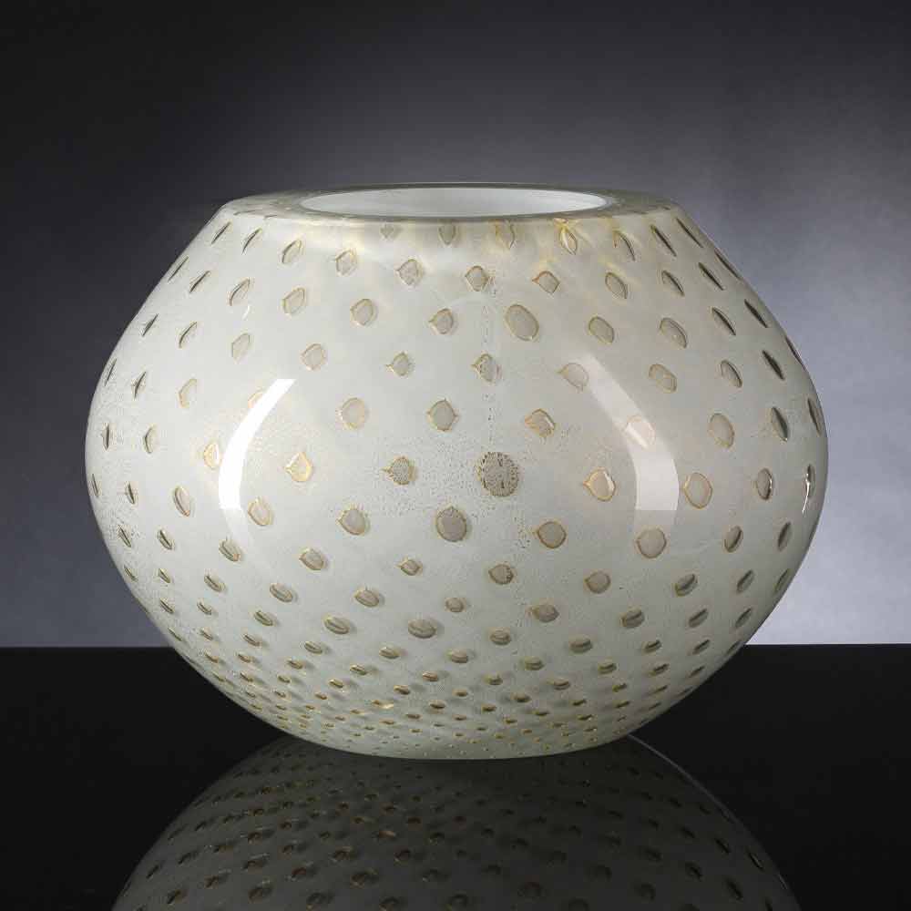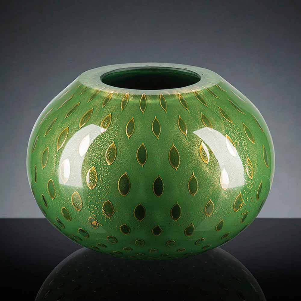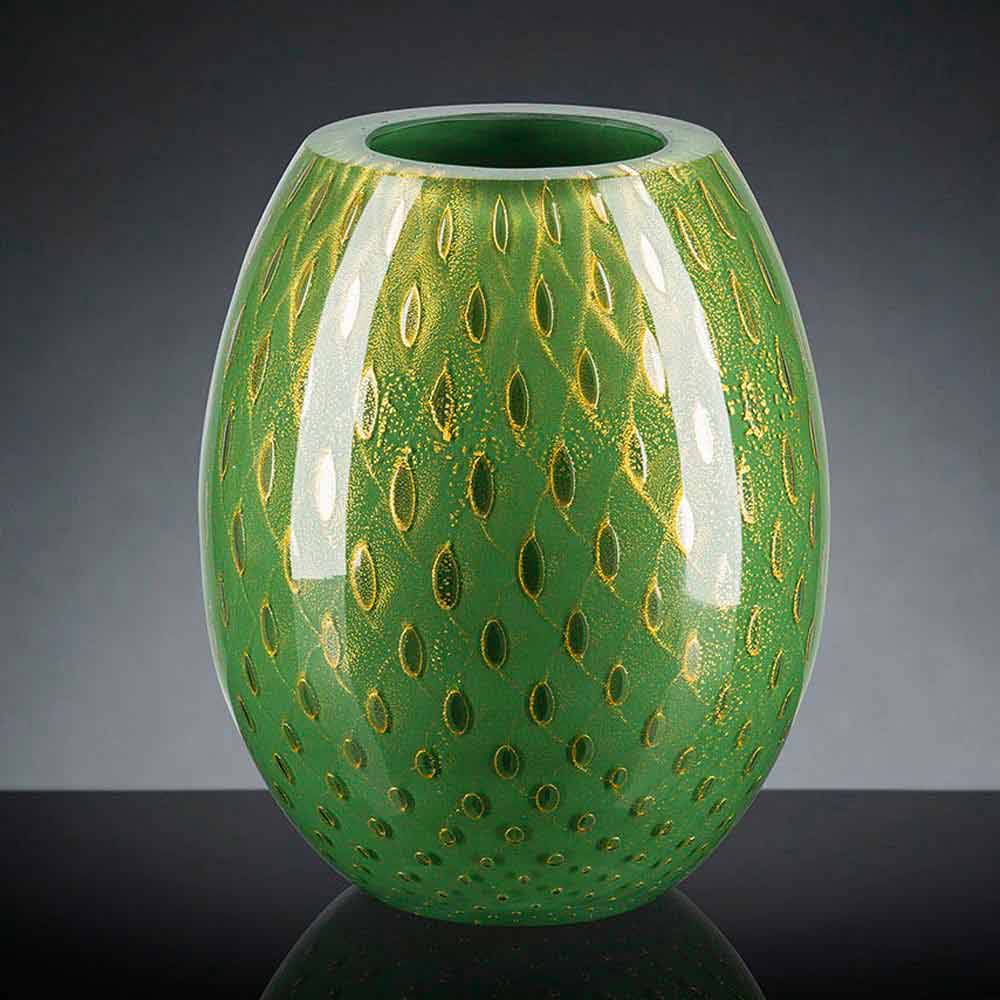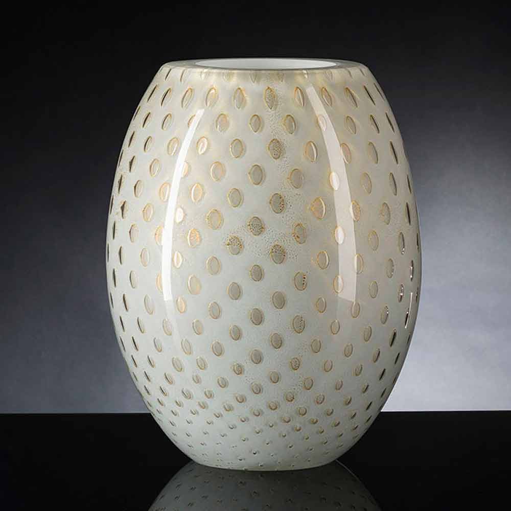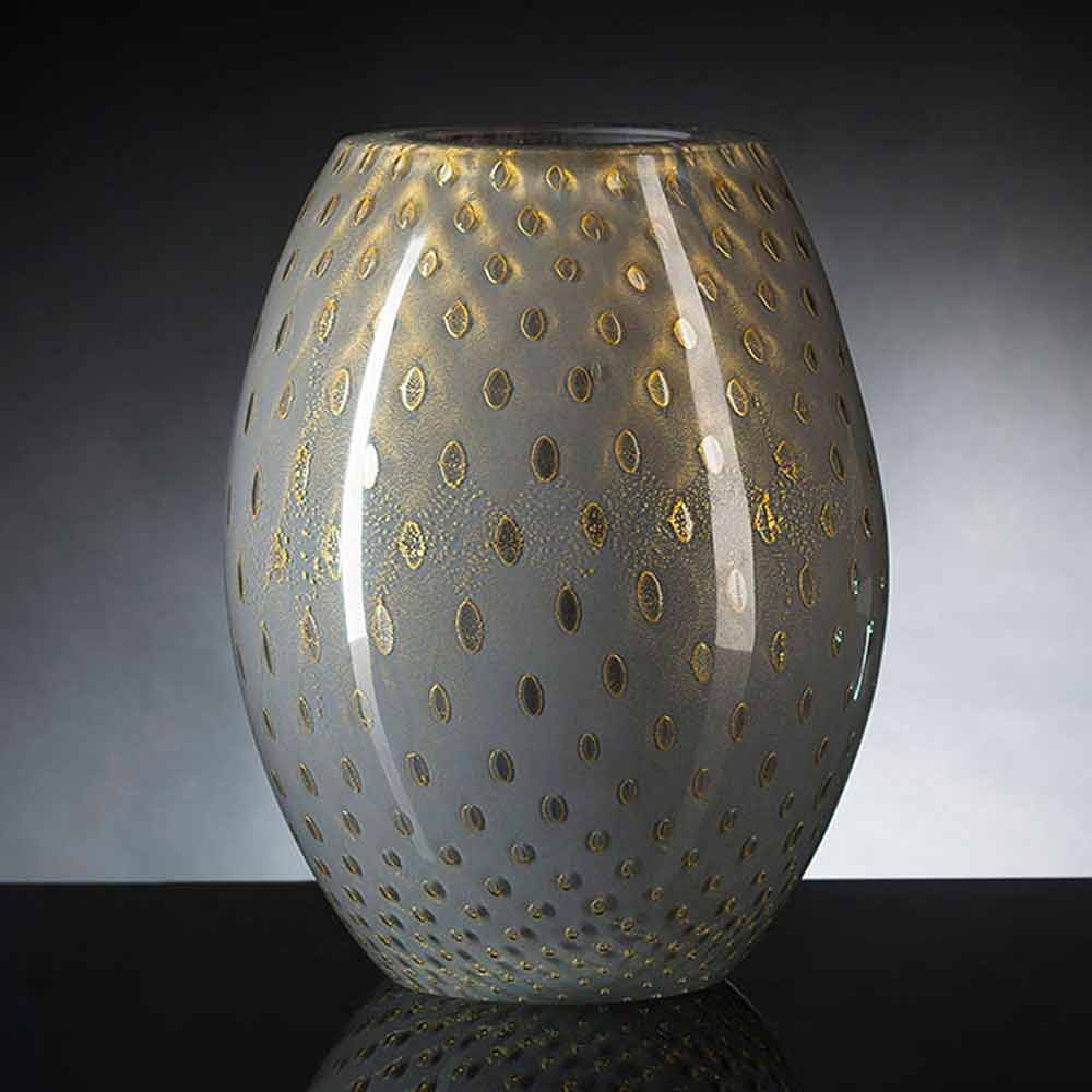 Indendørs vase i farvet Murano-blæst glas fremstillet i Italien.