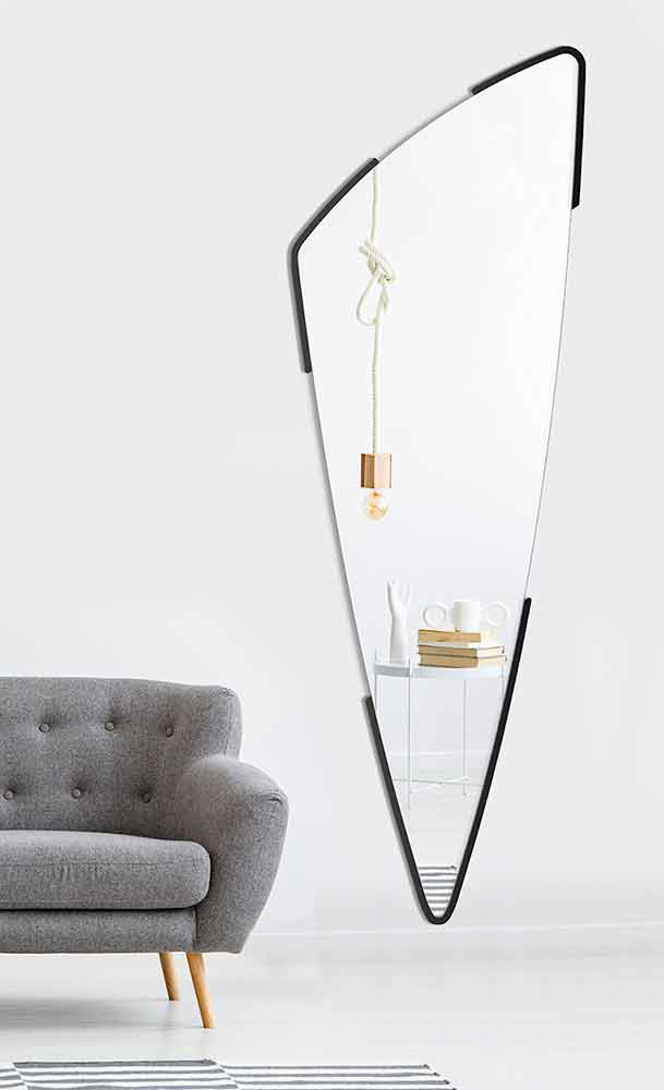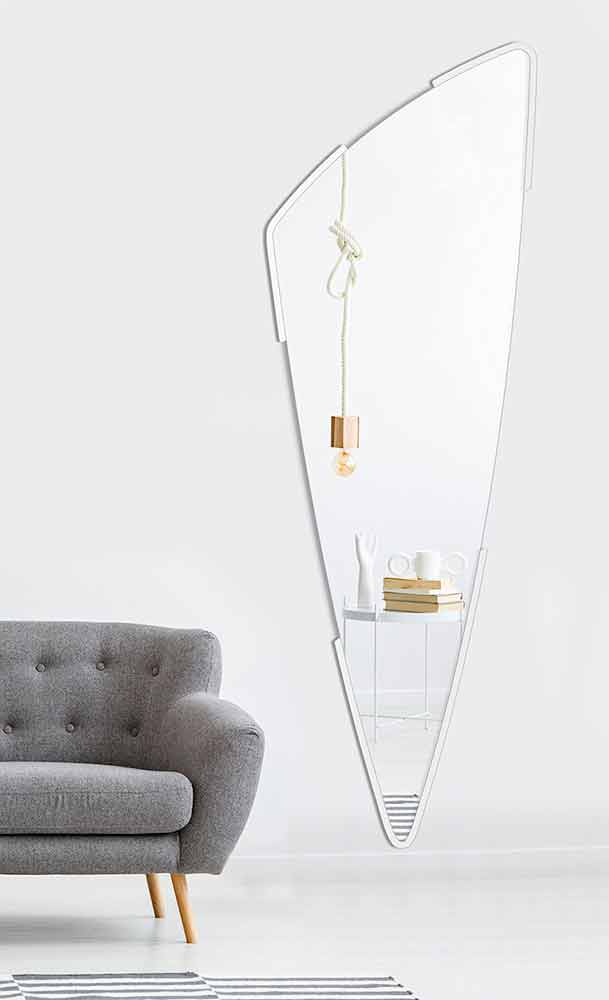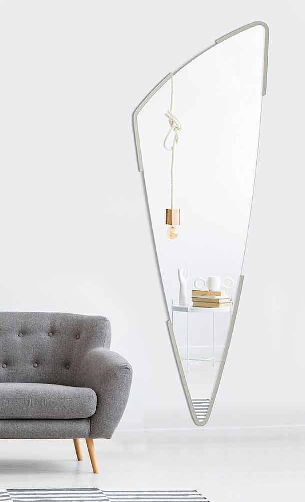 Lang moderne vægdekorativ spejl med minimal ramme i forskellige farver, formet design lavet i Italien.