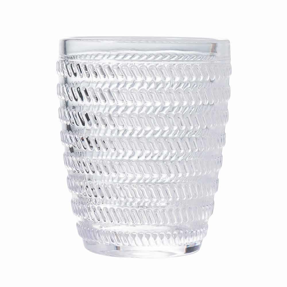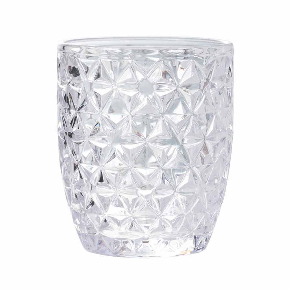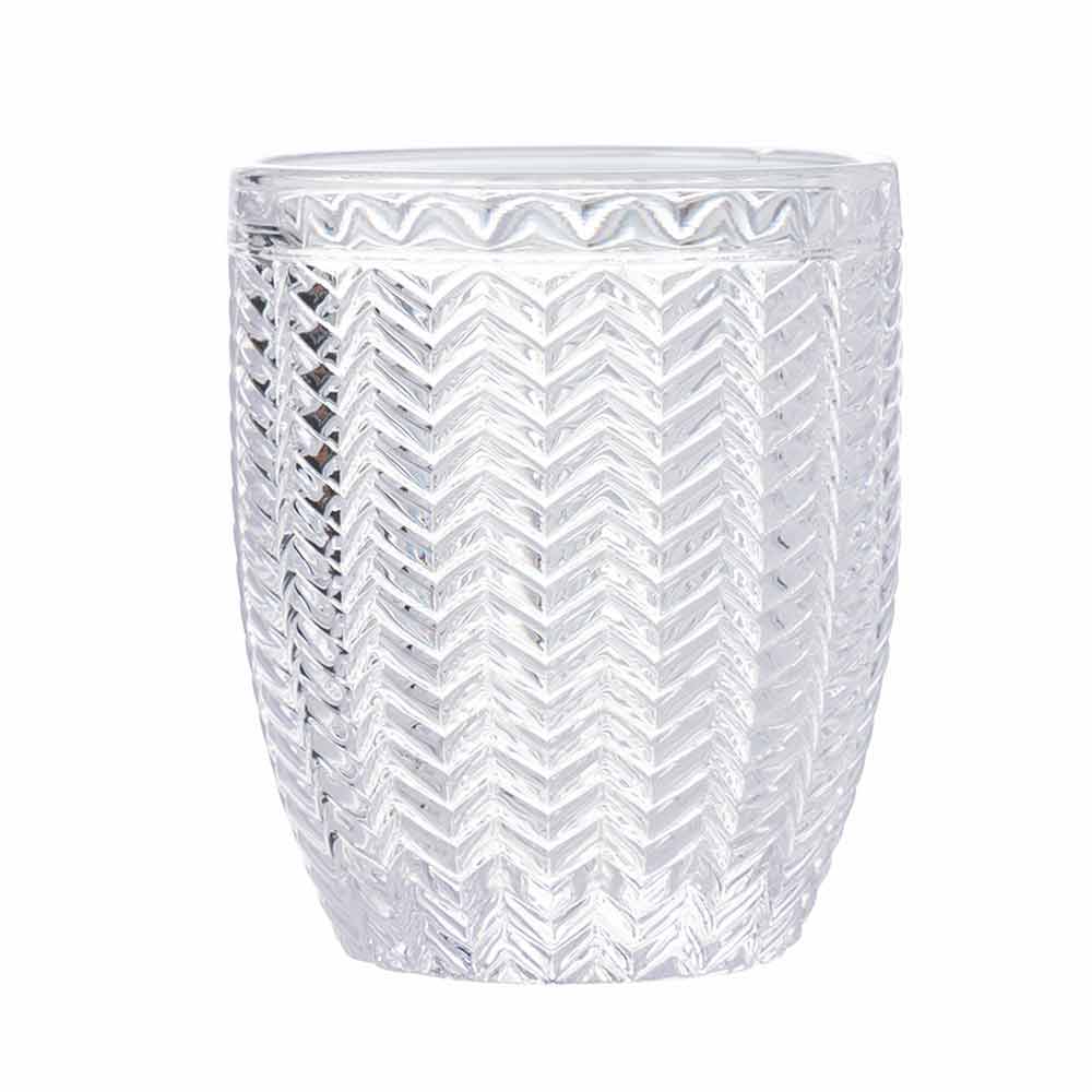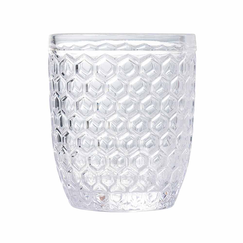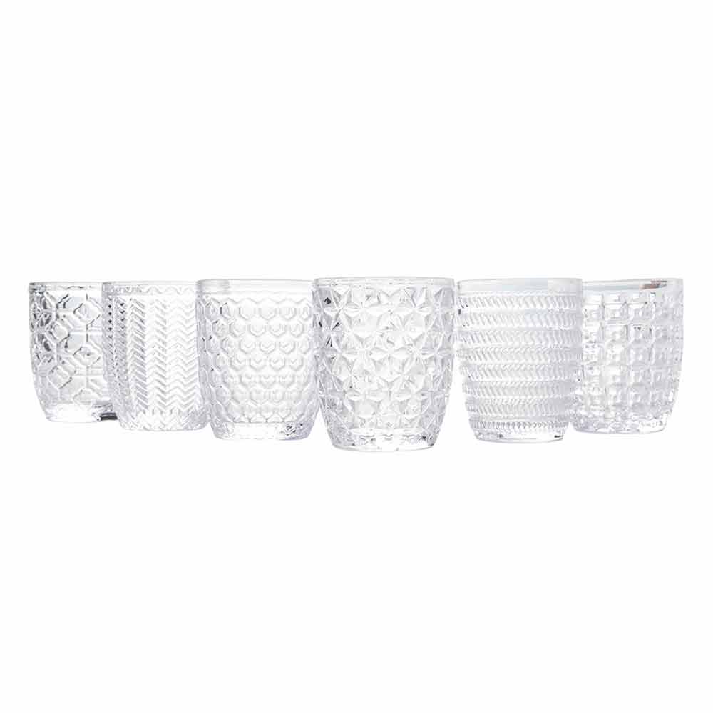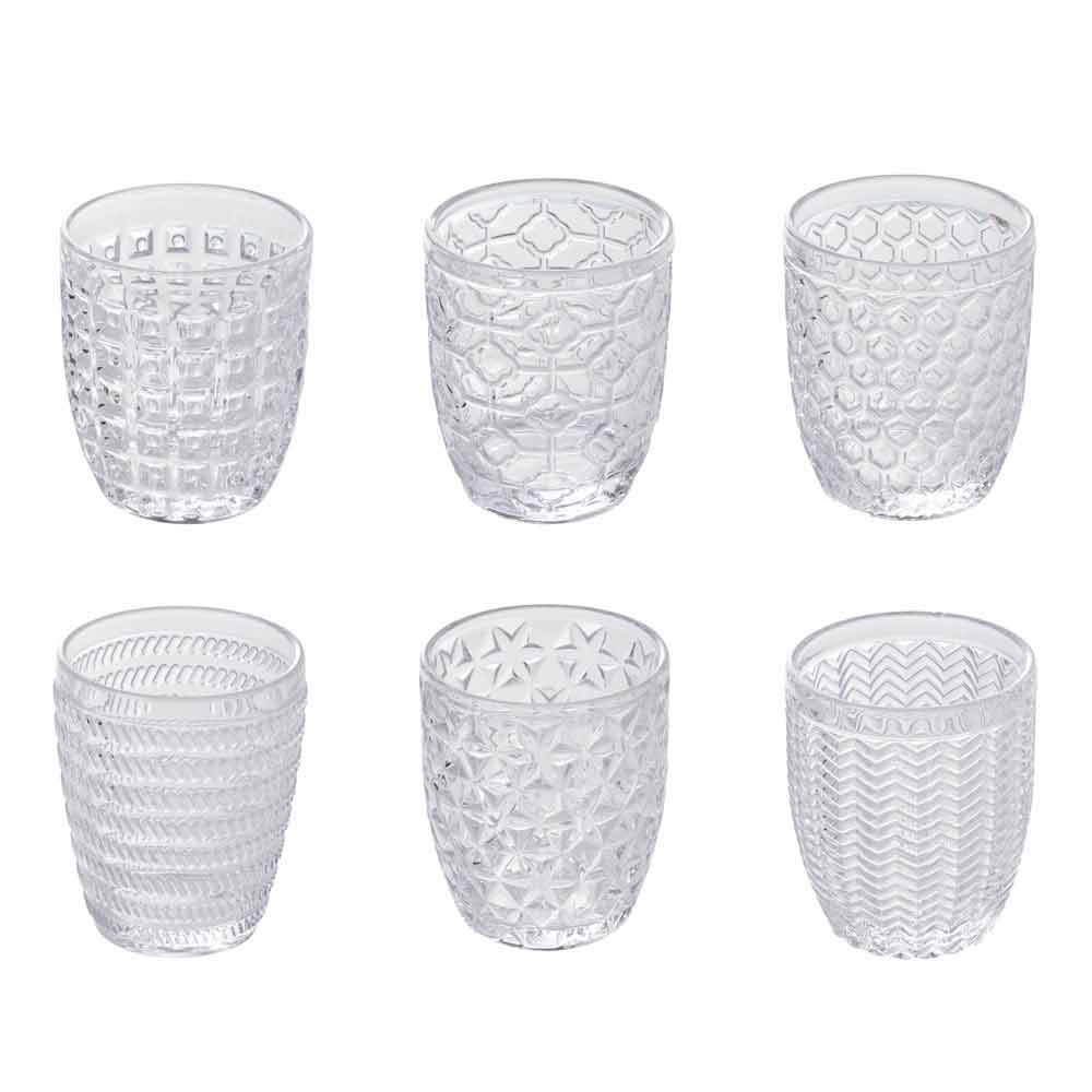 Sæt briller til vand lavet af gennemsigtigt glas dekoreret med forskellige geometrier, 12 stykker.