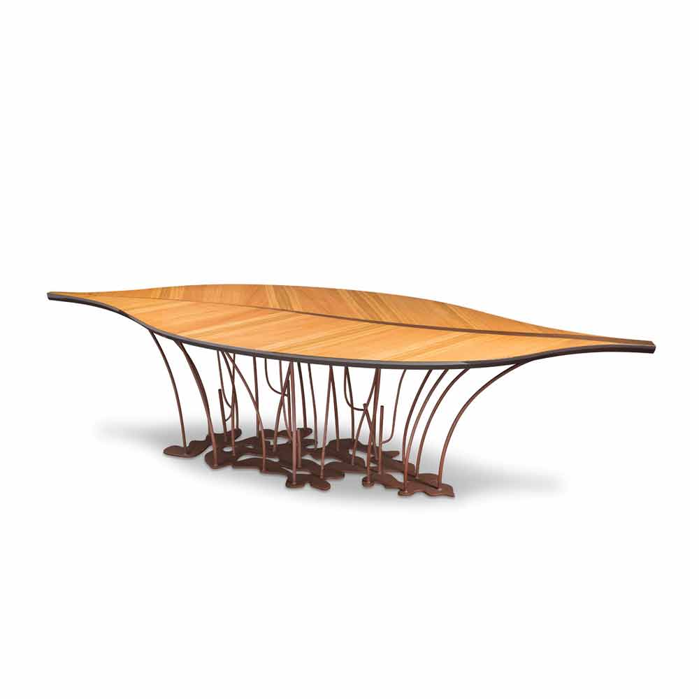 Phoenix er et robust bord, enkel og elegant, eksklusivt og moderne design, bladformet, velegnet til enhver indretning. En lille blad, suspenderet, impalpable, skalten i et vakuum, men på samme tid og beregnet til at strække sig over tid, så solidt, som den velkendte venetianske Theater, hvorfra det er inspireret. Bord med et unikt design og uforlignelige, er dens væsentlige kendetegn indkapslet i sin formede top lavet af høj densitet MDF, finer eg i en "sildeben", med centrale platte i valnød. Færdig fuldstændigt forglasset børstet polyester. Dens base "skulptur" minder om de grene, er lavet af Corten effekt malet metal. symbol bord og helt produkt af håndværk af italienske tømrere, bringer sit unikke design. Heri eg, valnød og stålet smelter ind i en varm og ubrydeligt omfavnelse. Dens form tillader kombinationen af en anden tabel for at øge størrelsen samtidig opretholde uændret form.